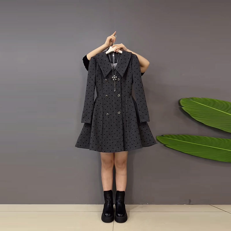 胖妹妹翻领收腰长袖连衣裙加肥大码女装中长款显瘦设计感通勤裙子