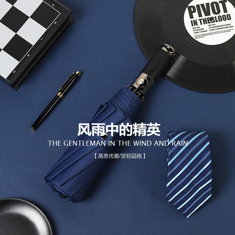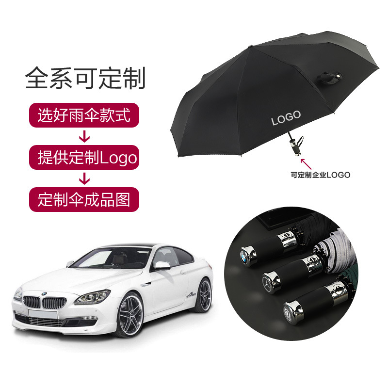 新款10骨加大4S店车标雨伞黑胶折叠商务礼品广告自动伞