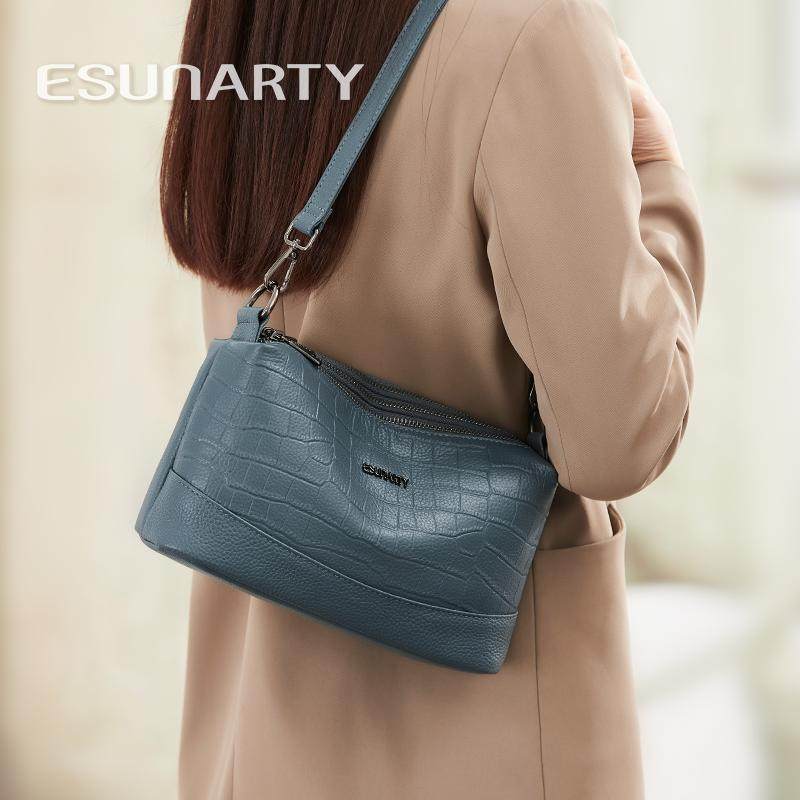 斜挎多层包包女式2025新款时尚鳄鱼纹单肩包女士大容量真皮妈妈包