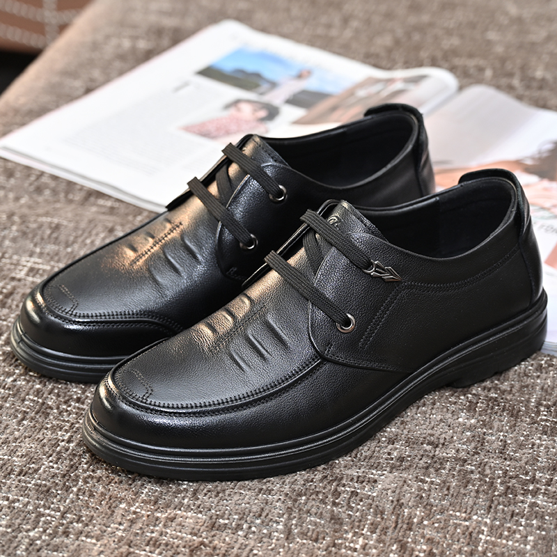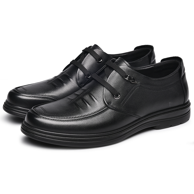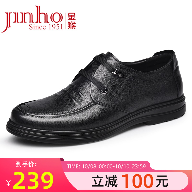 金猴真皮皮鞋男春季黑色英伦风男鞋商务休闲鞋牛皮男士爸爸皮鞋