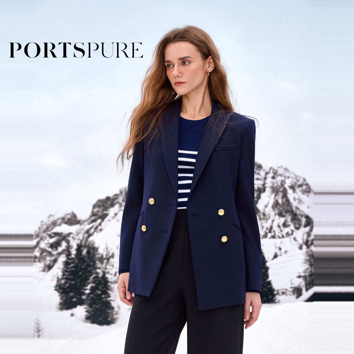 商场同款 宝姿PORTSPURE女装2025秋冬新品优雅收腰毛呢西装外套