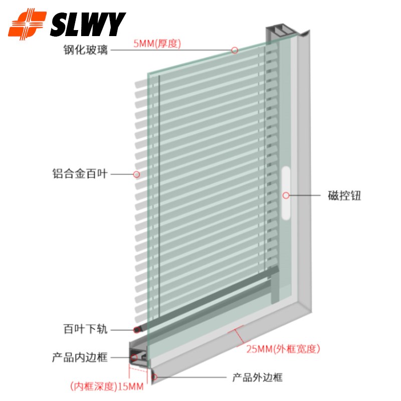 磁控百叶窗铝合金内置单玻璃中空百叶阳光房办公室卫生间内开窗帘