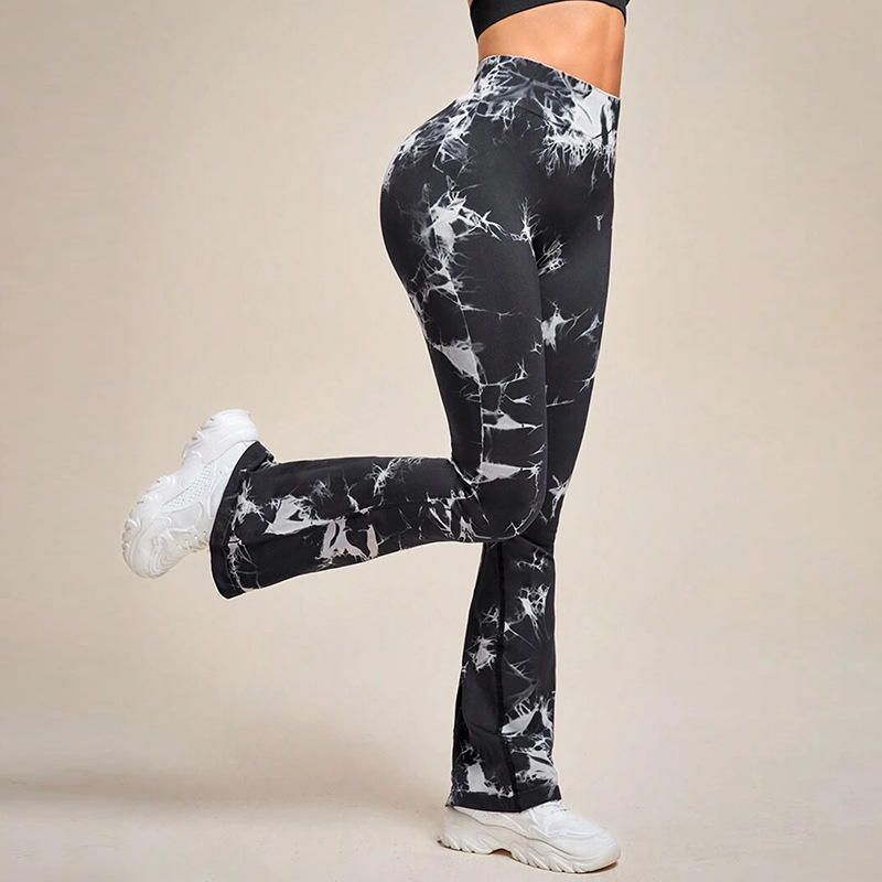 运动紧身蜜桃微喇叭提臀女高腰收腹瑜伽健身长裤速干无缝扎染运动