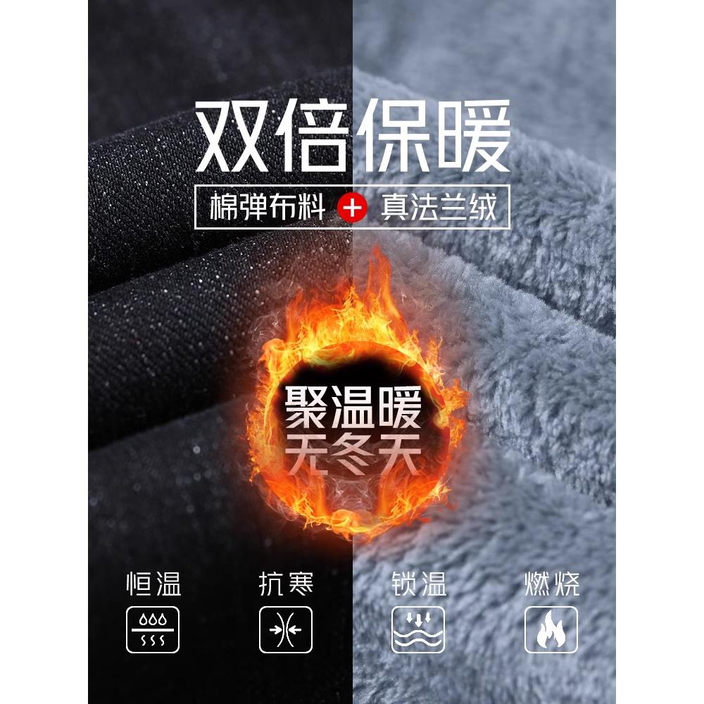 香港2024秋冬款男士加绒牛仔裤加厚保暖直筒宽松休闲加棉裤子冬季