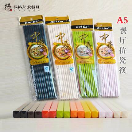 10双装密胺仿瓷筷子酒店饭店快餐筷餐厅消毒彩色筷子树脂塑料筷子