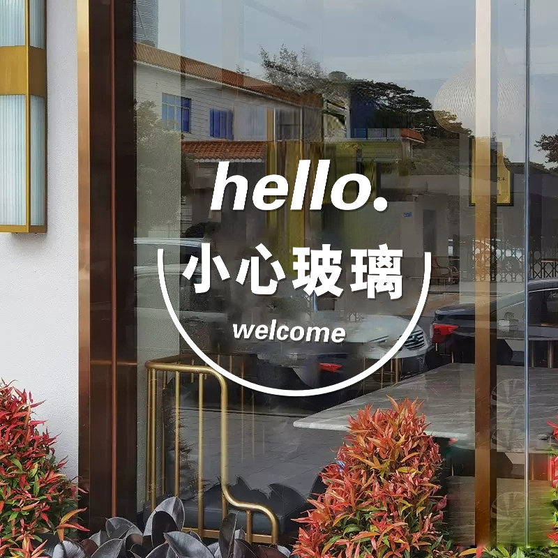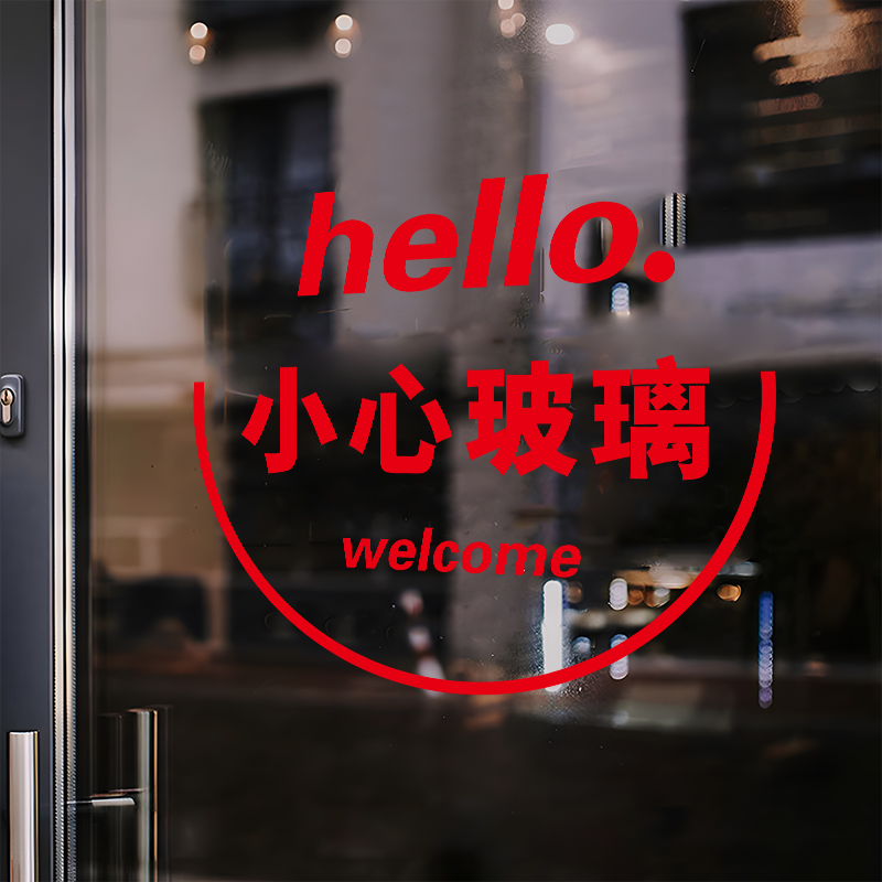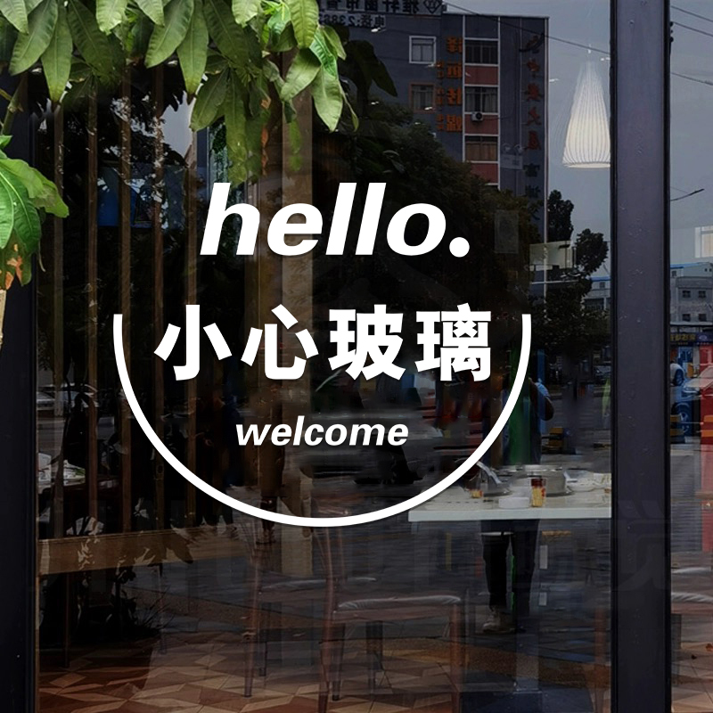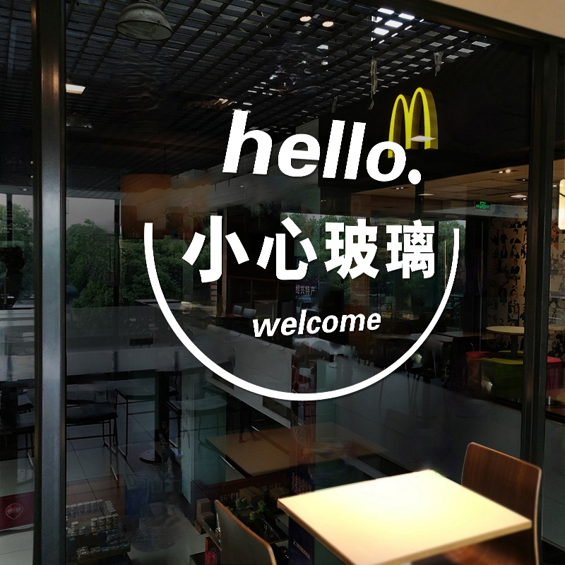 创意玻璃门贴纸欢迎光临贴服装店奶茶店推拉门防撞贴小心玻璃贴画