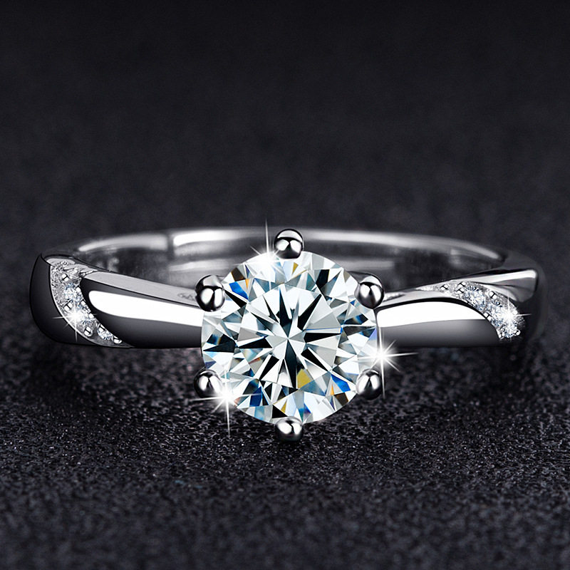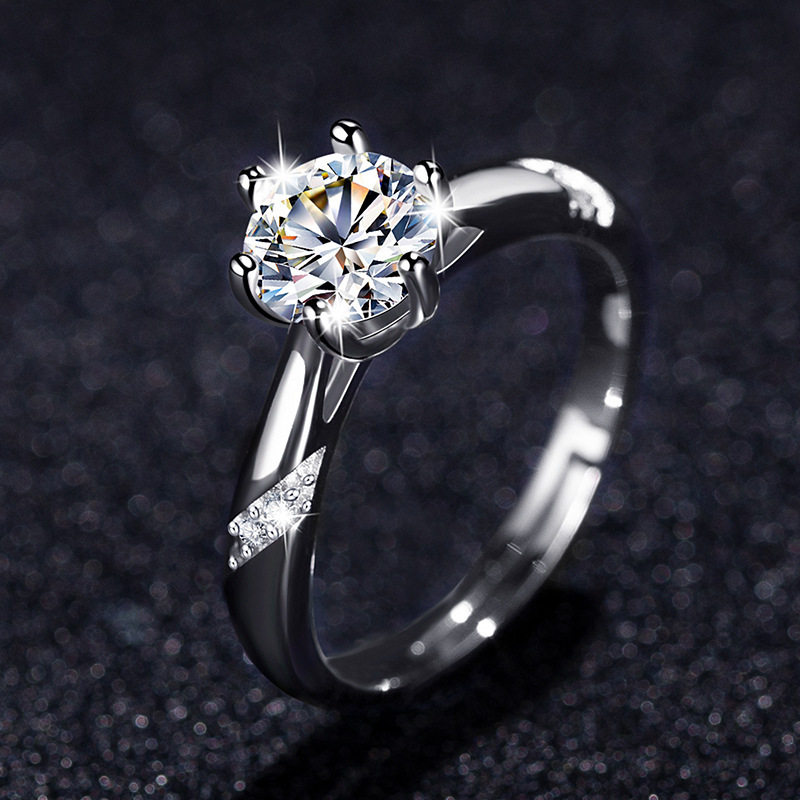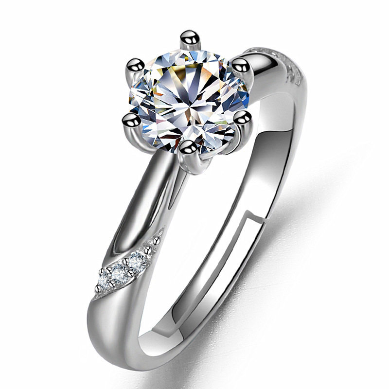 欧美高端珠宝女士经典皇冠硞石镶钻镀白金戒指简约甜美结婚钻戒