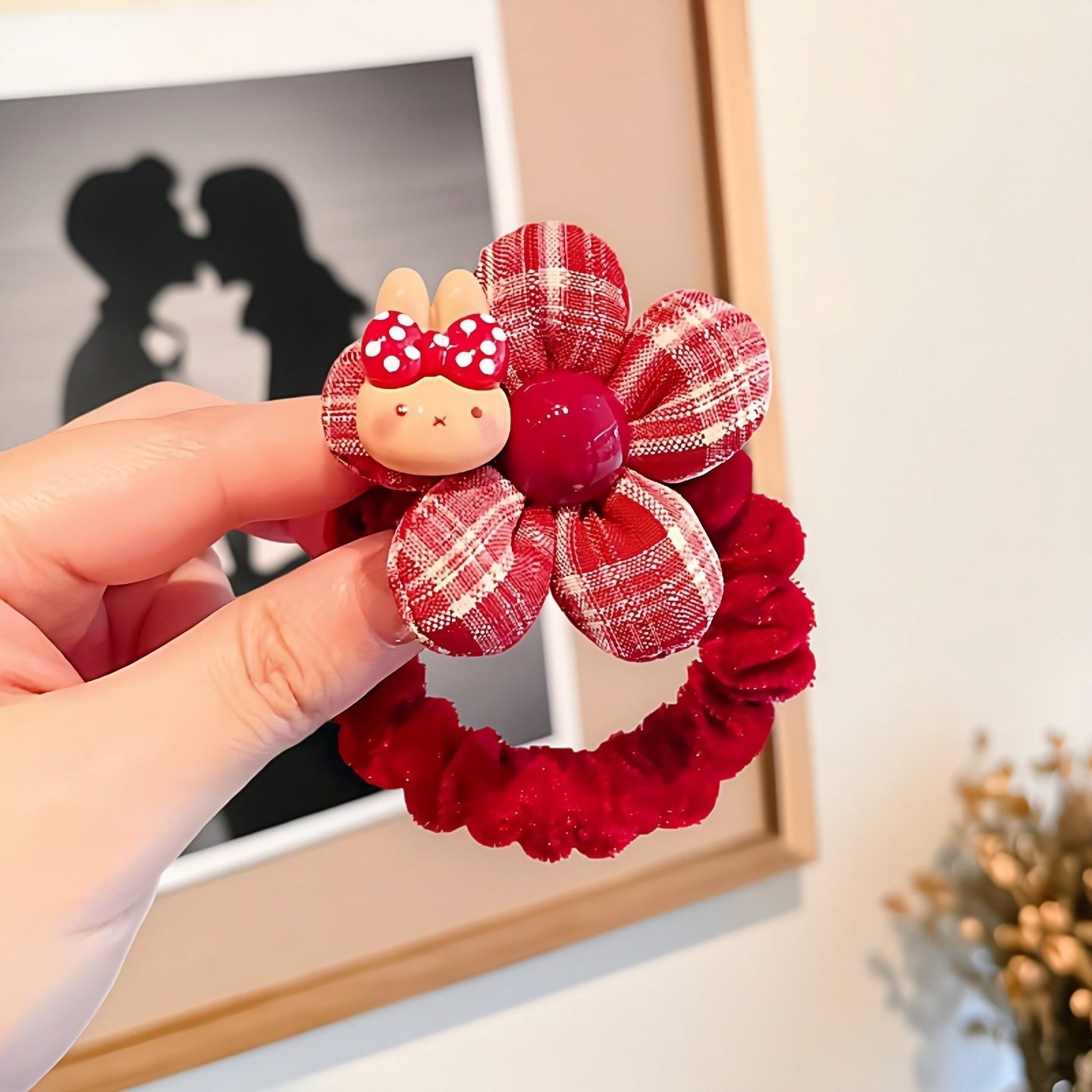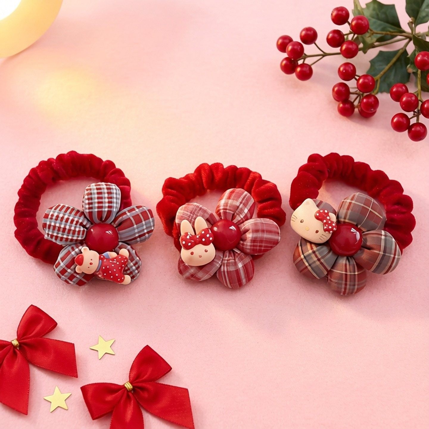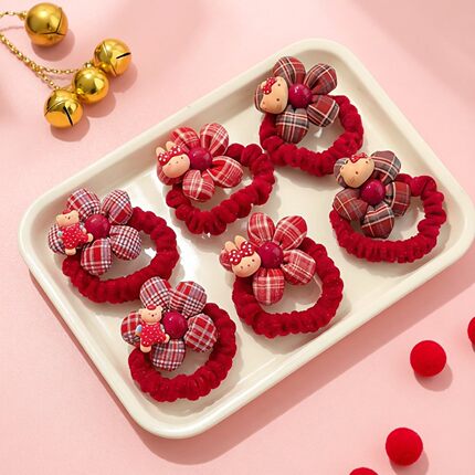 儿童新年红色花朵发绳