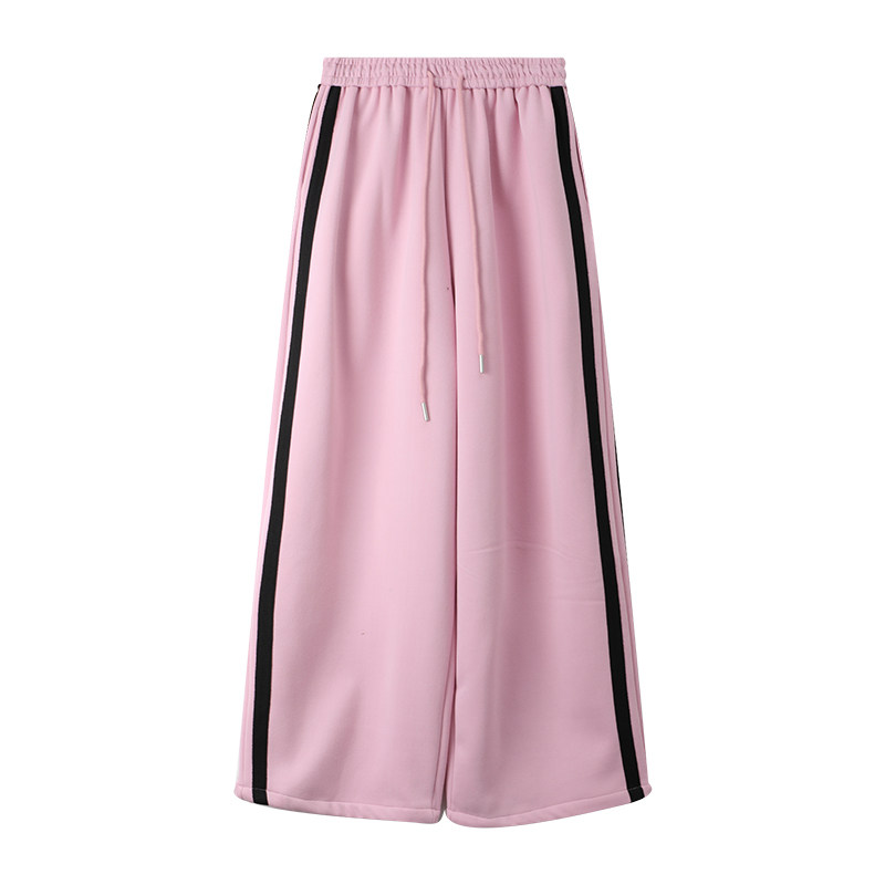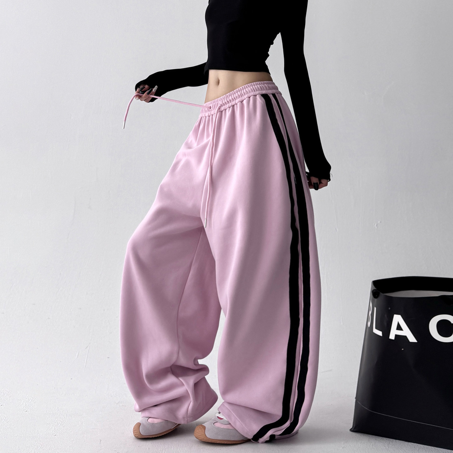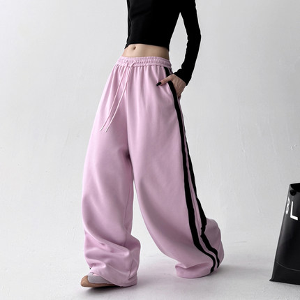 加绒少女系粉色运动裤女2025冬装新款韩系穿搭宽松学生阔腿休闲裤
