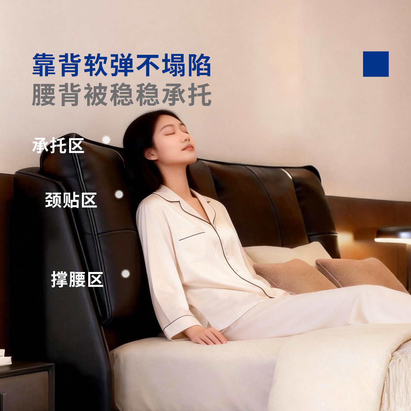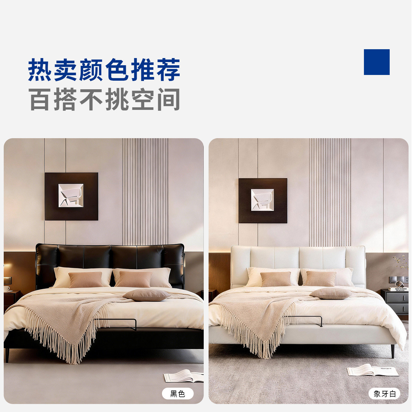 Mlily梦百合意式极简真皮床现代简约1.8米主卧软包黑色高端皮艺床