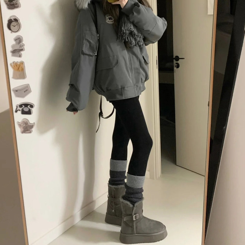 黑色螺纹打底裤女冬2025新款外穿加绒保暖棉裤小个子高腰显瘦裤袜
