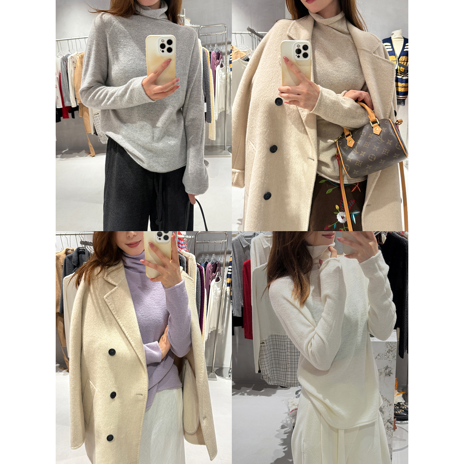 高领亮片设计感针织羊毛衫女2025秋简约纯色修身显瘦内搭打底上衣