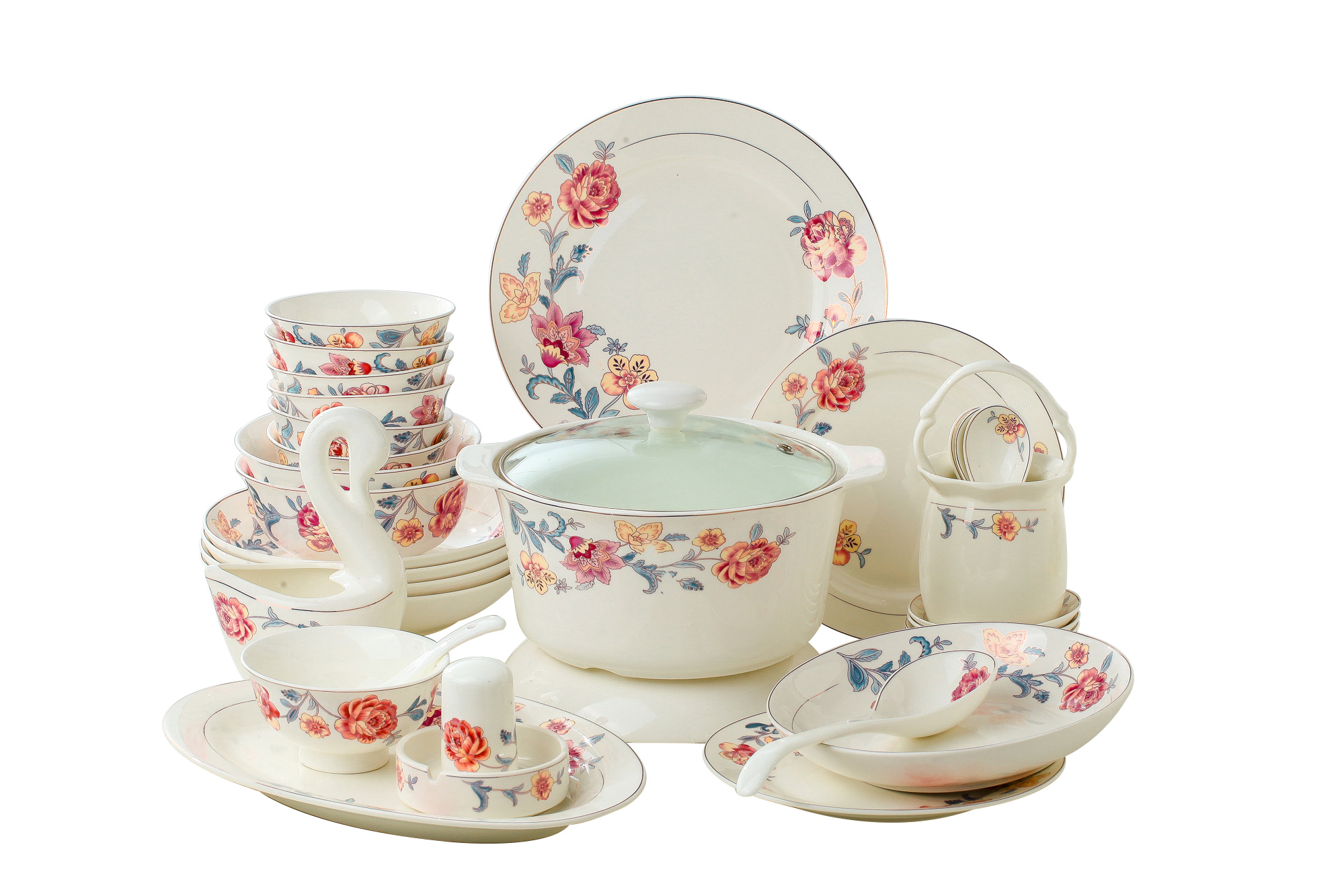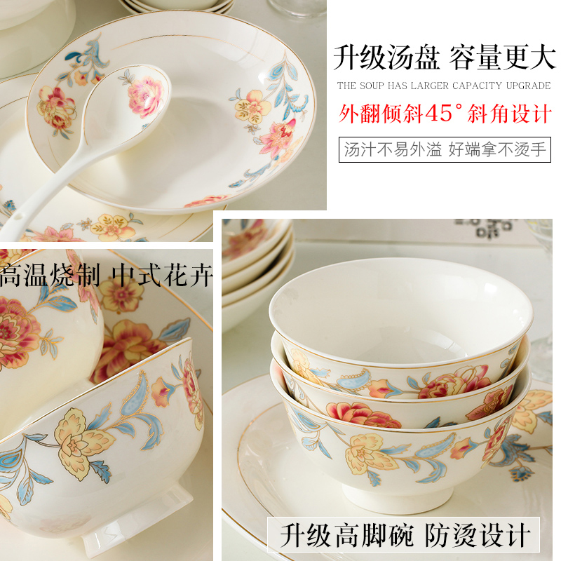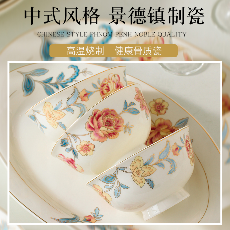 景德镇陶瓷碗碟套装家用中式轻奢2024新款饭碗盘筷子骨瓷餐具套装