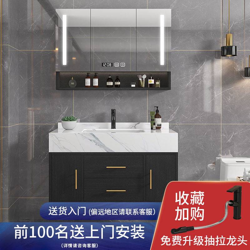 轻奢浴室柜组合现代简约大理石洗脸台洗手台盆卫生间洗漱台挂墙式