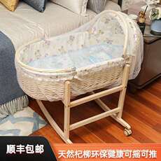 藤编婴儿摇篮床新生儿外出便携手提篮车载安抚睡篮宝宝床摇篮实木
