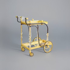 欧式宫廷风奢华镀金框架水晶餐车,双层镜面移动酒水服务车