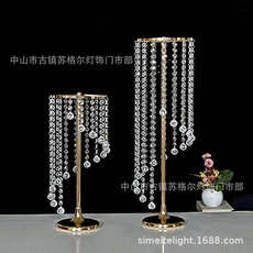 婚庆铁装饰欧式摆件艺花架水晶金色新款插花婚礼批发器条道具电镀