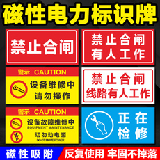 禁止合闸有人工作警示牌电力抢修供电监察标识牌设备保养磁性吸铁提示警告牌高压危电力安全线路停工维修标志