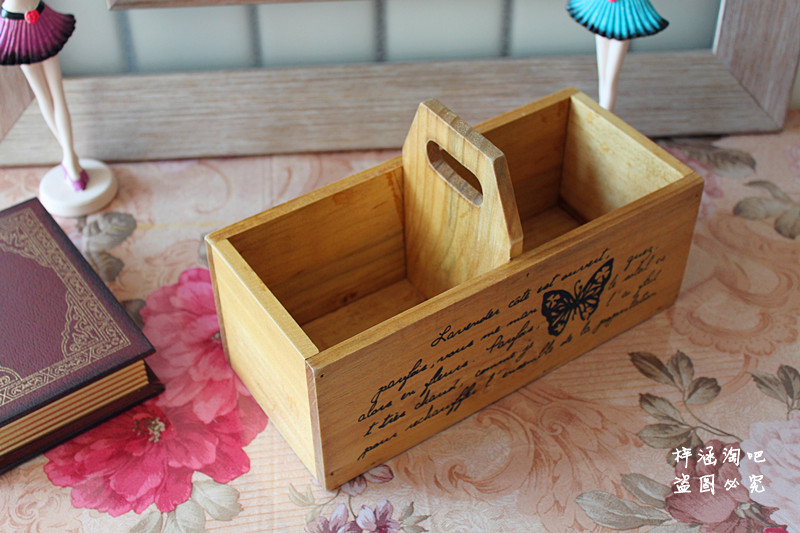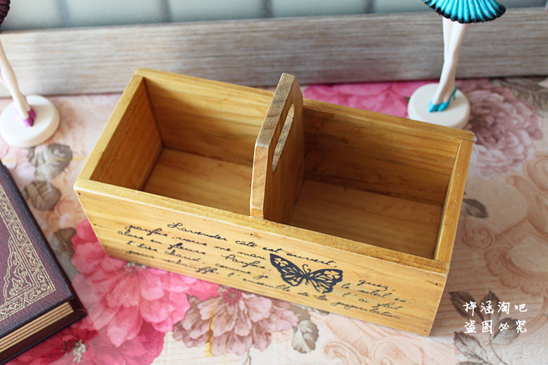满包邮zakka杂货复古做旧木盒收纳盒笔筒两格遥控器盒桌面收纳