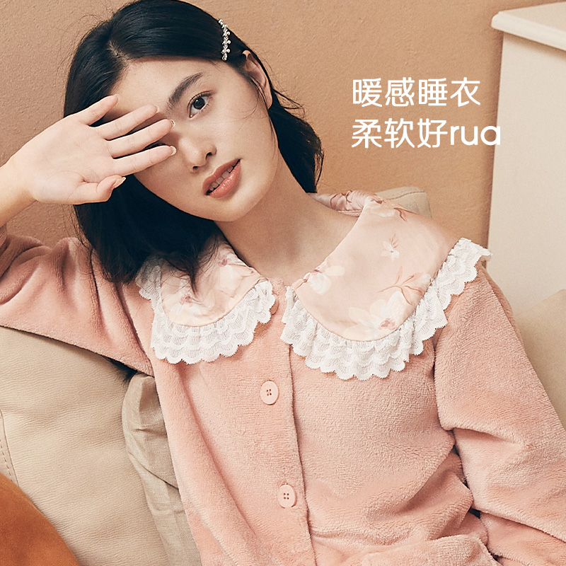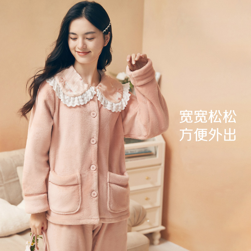 富妮来睡衣女士雪花绒加绒加厚冬季保暖可外穿家居服套装