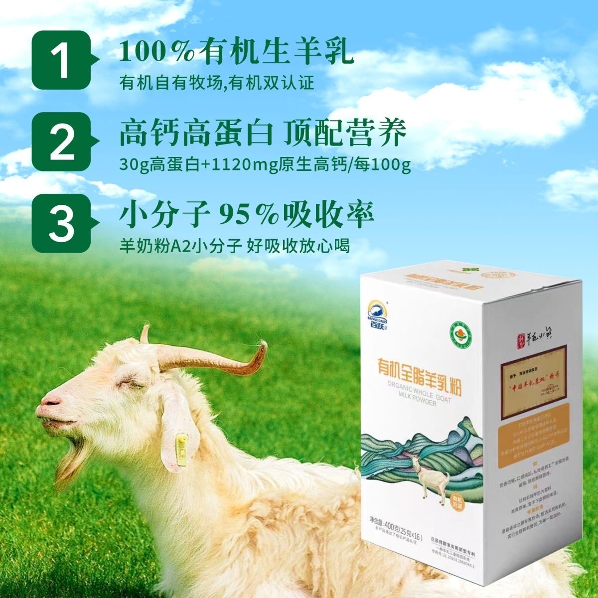 百跃有机全脂纯羊奶粉脱膻高钙益生菌青少年中老年儿童羊奶粉