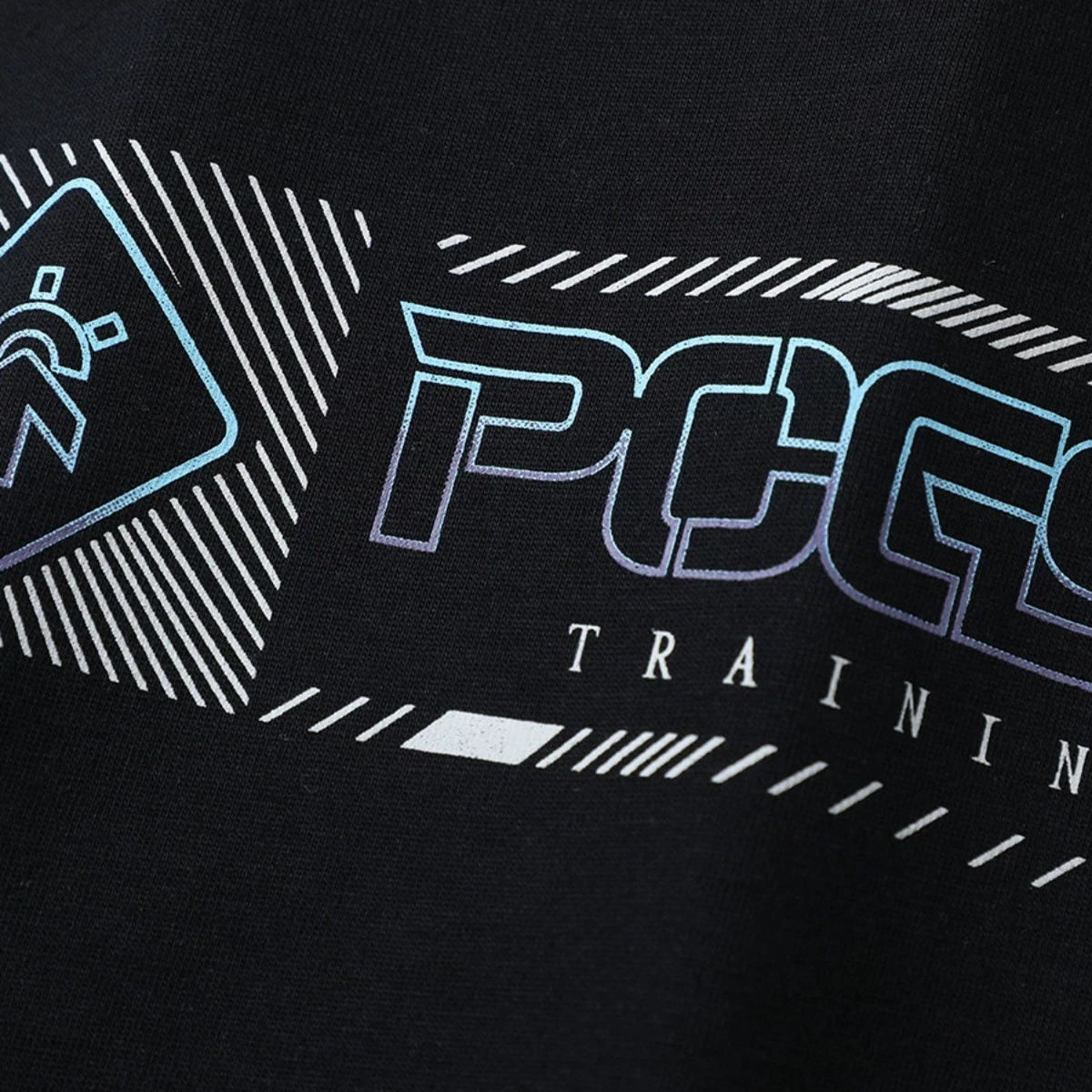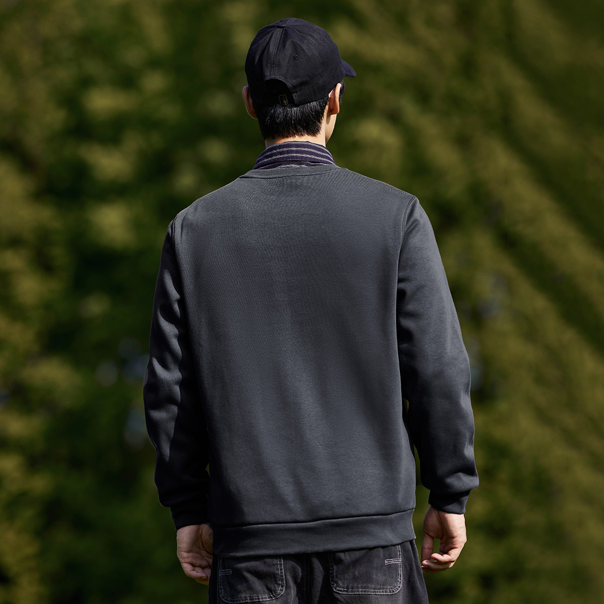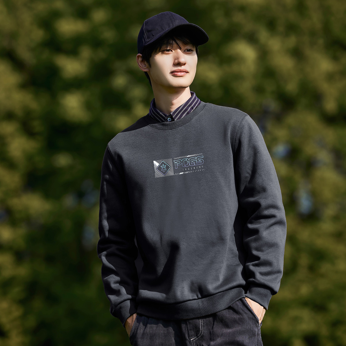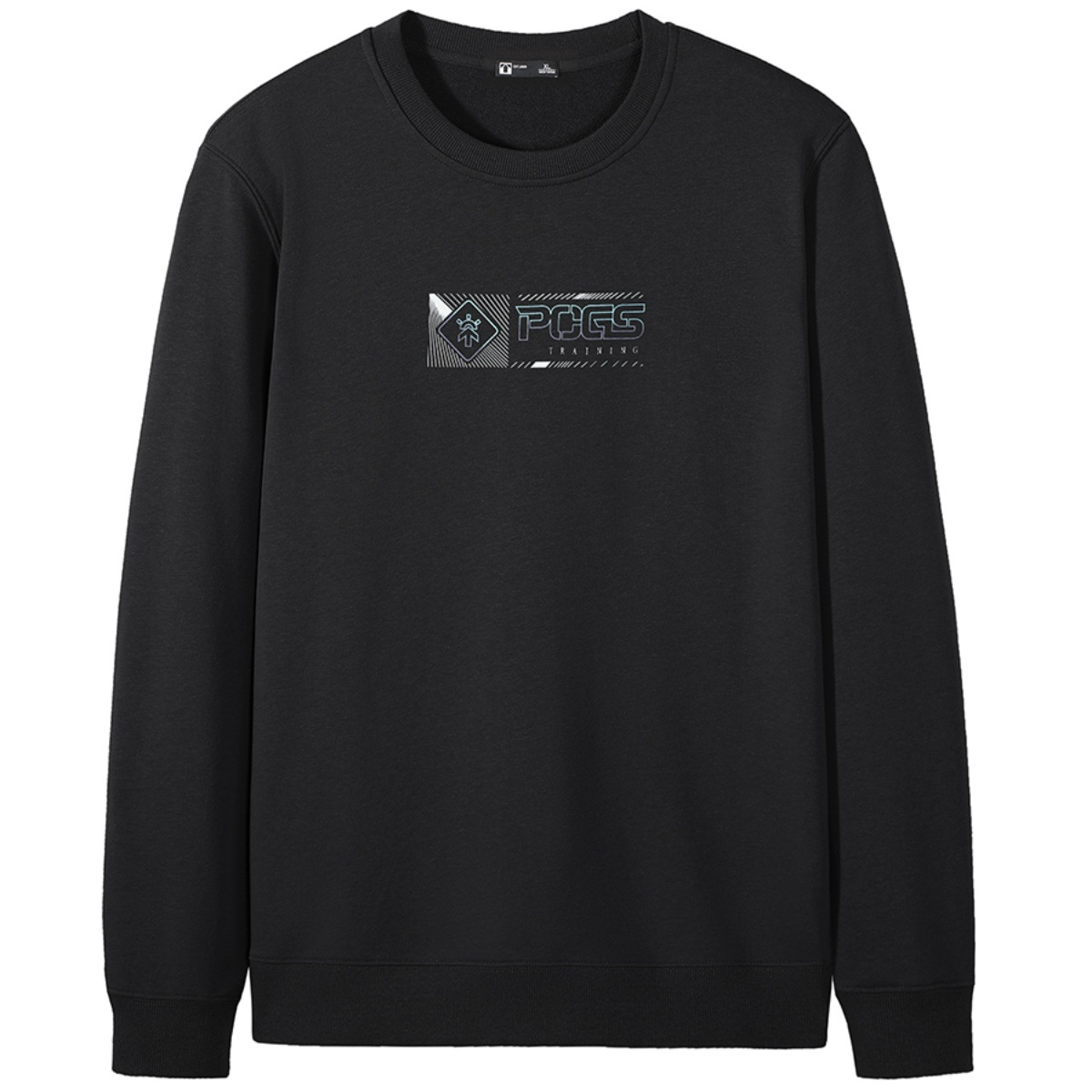 拓路者男式卫衣春秋新款无帽正肩套头衫印花休闲圆领长袖黑色上衣