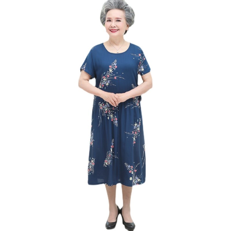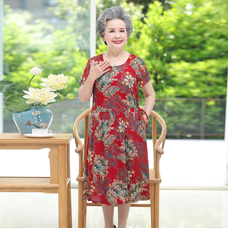 奶奶装夏装连衣裙60岁70中老年人夏季女短袖老人妈妈装绵绸过膝裙