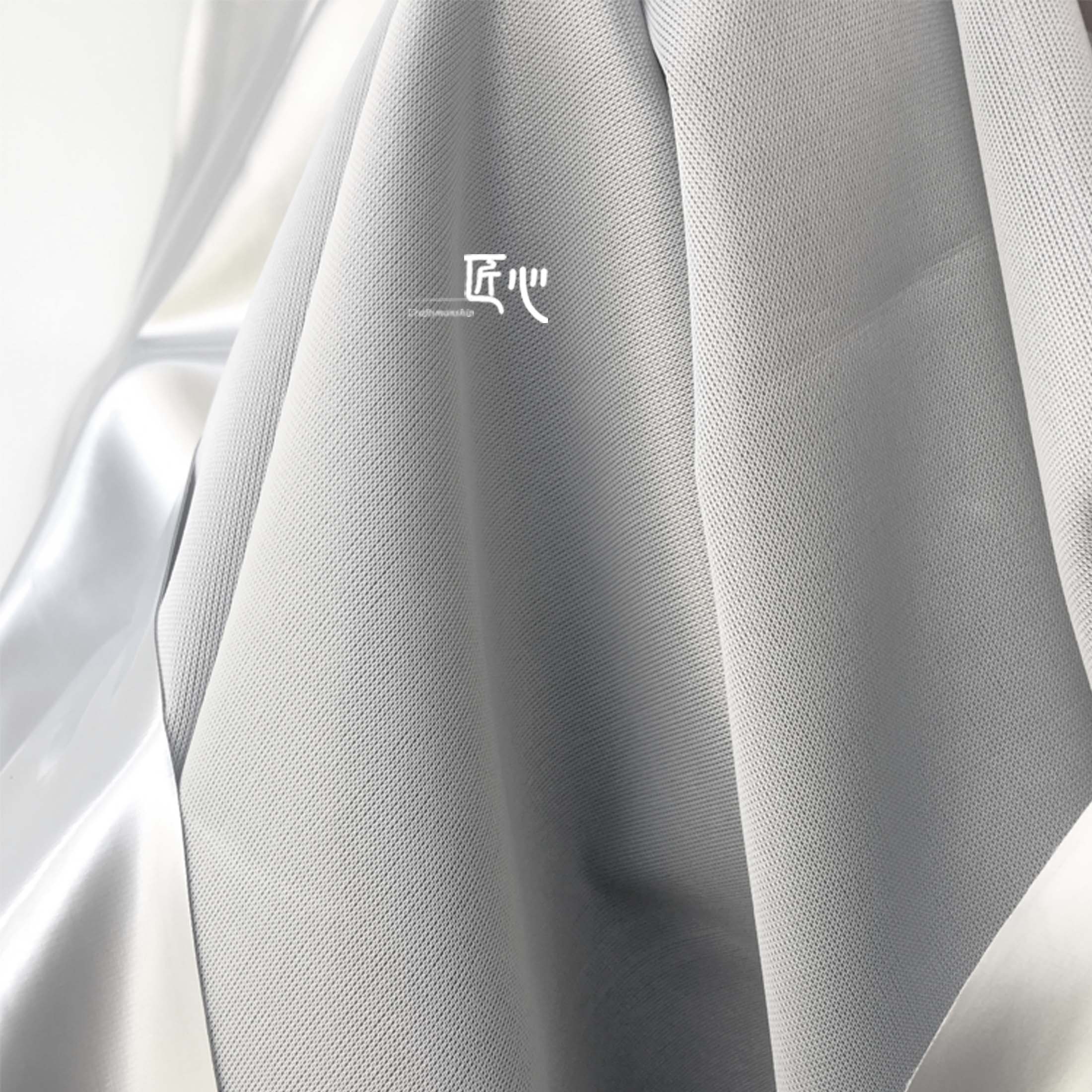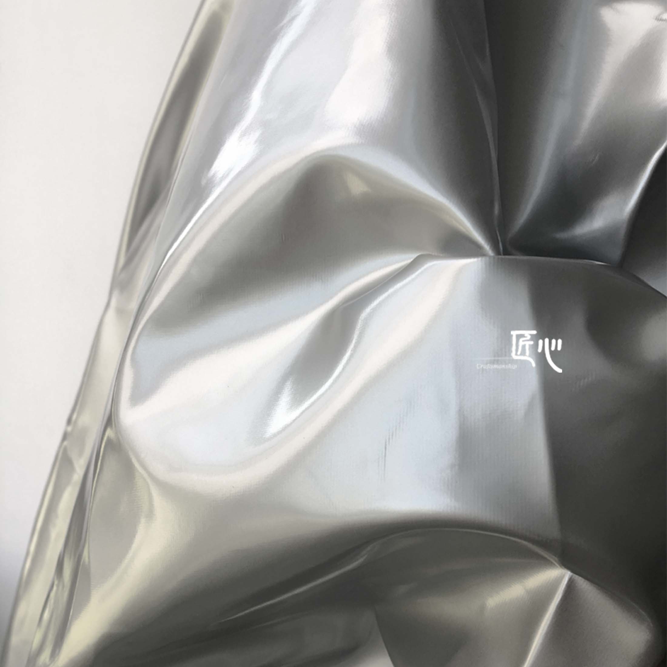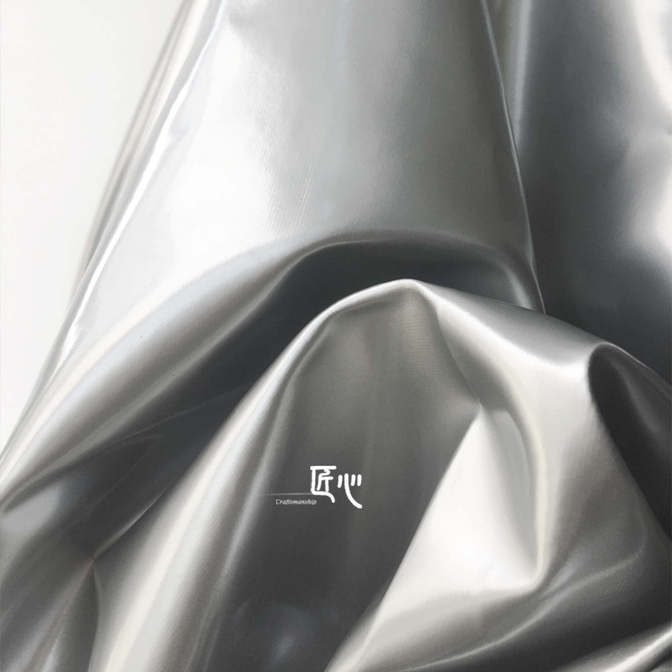 灰银色亮光皮革 厚硬挺廓形舞台表演 镭射大衣外套服装设计师面料