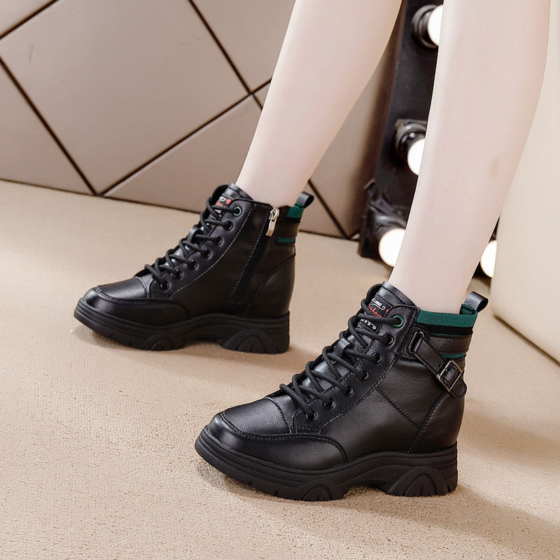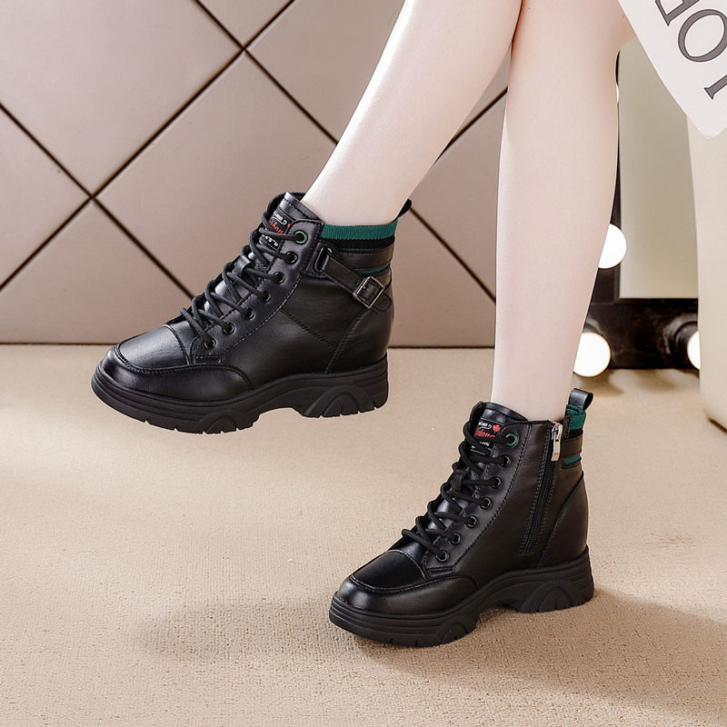 内增高马丁靴真皮休闲鞋2025春夏新款短筒靴显瘦加绒冬季女靴子潮