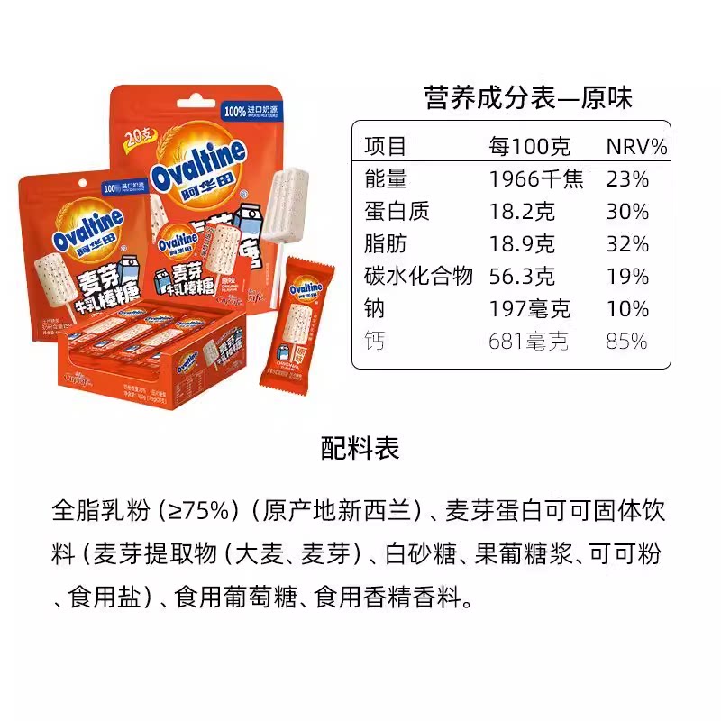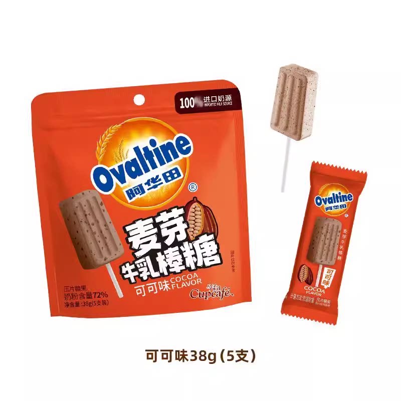 Ovaltine/阿华田可可牛乳棒棒糖高钙奶片麦芽办公休闲儿童零食