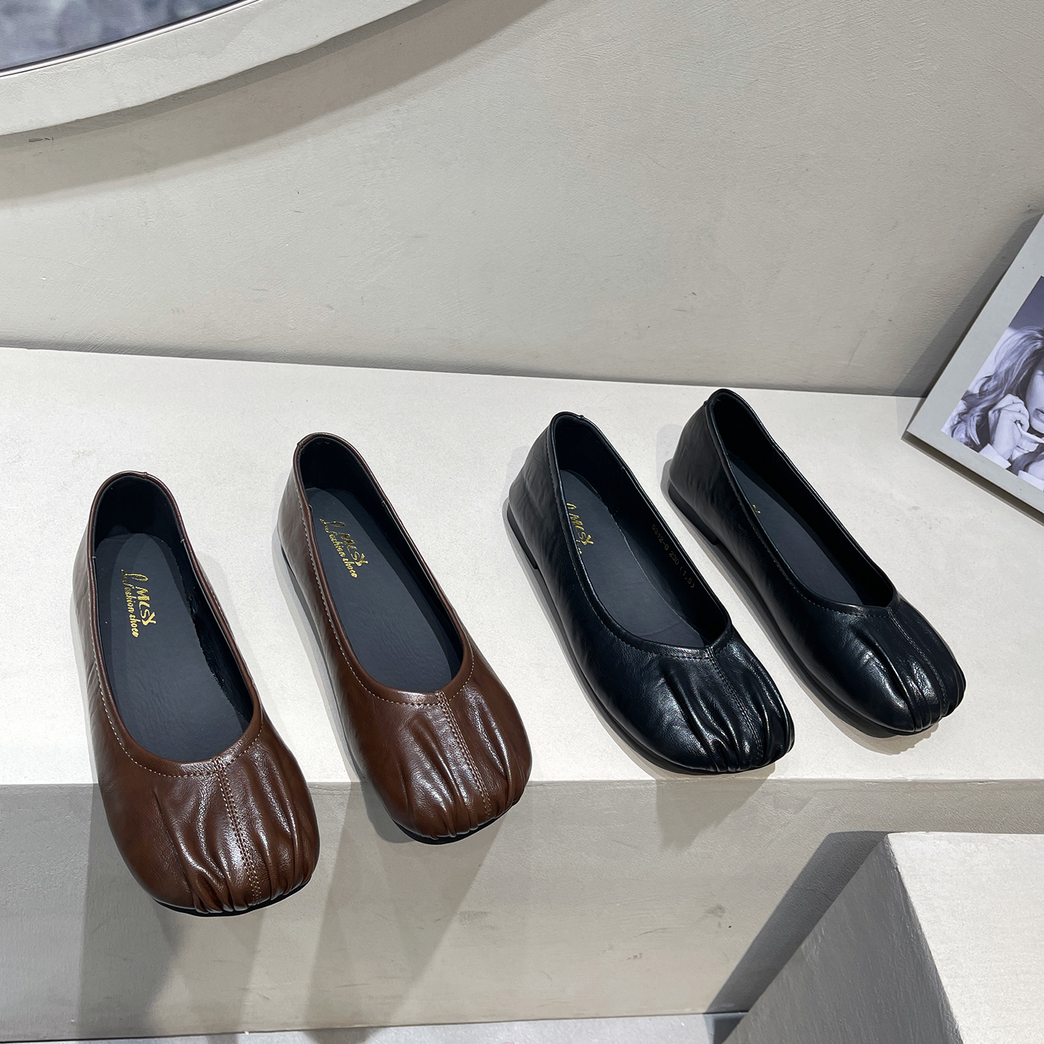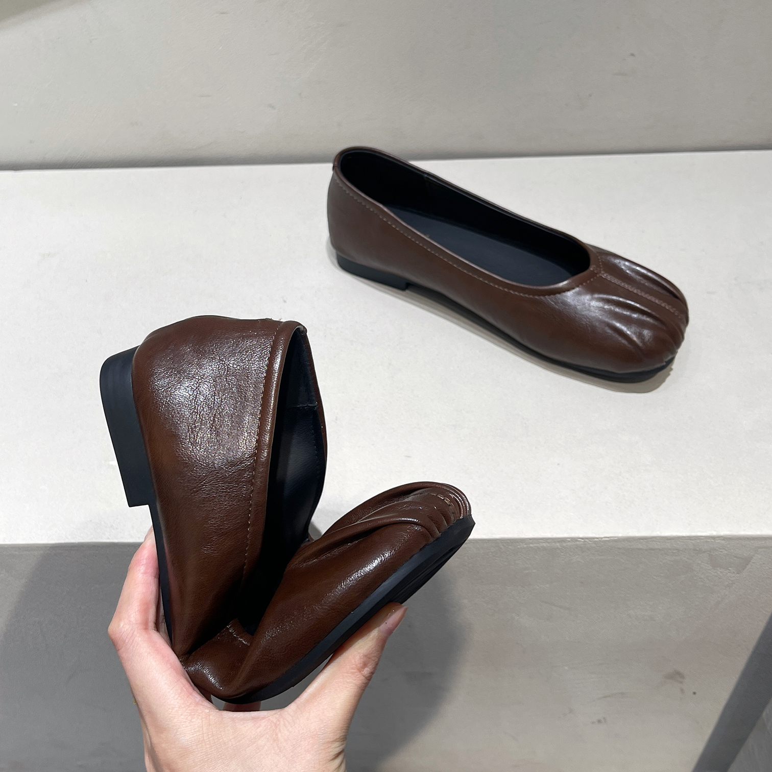褶皱面黑色单鞋女2025新款配裙子法式平底鞋一脚蹬奶奶鞋舒服瓢鞋