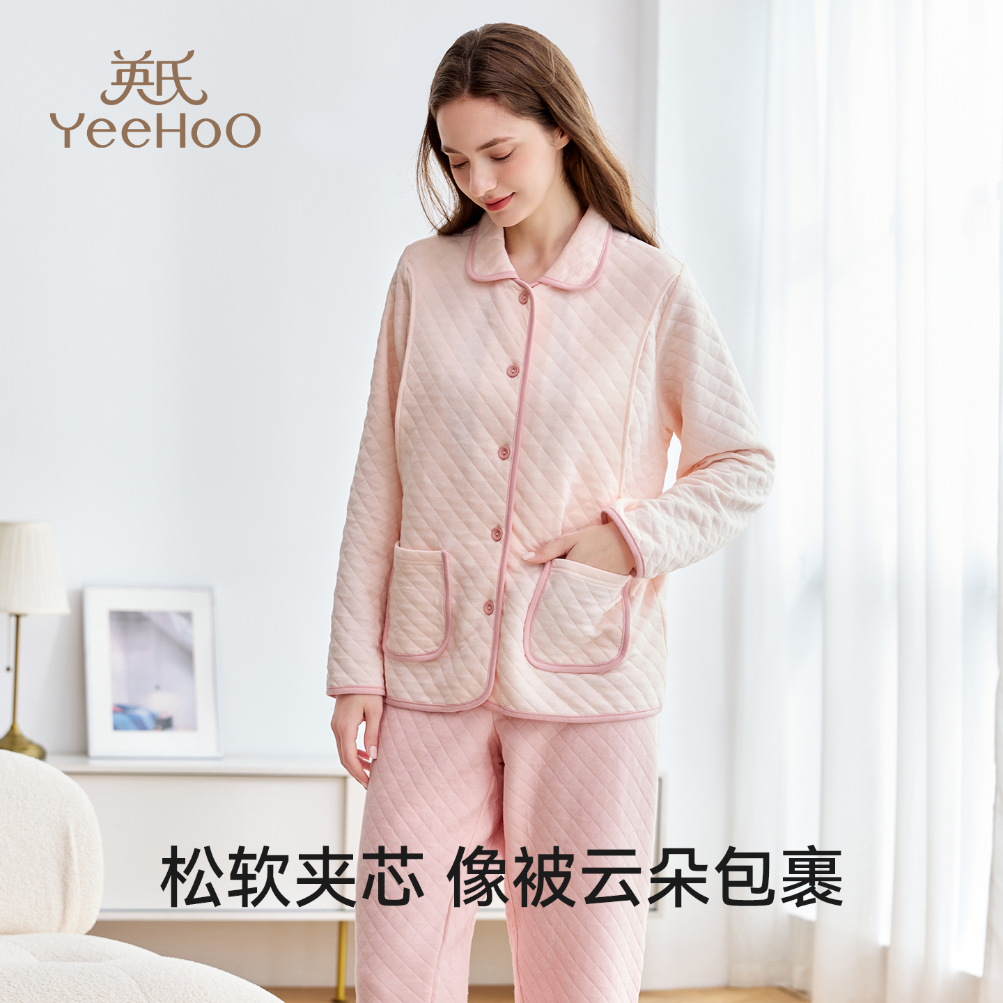 英氏孕妇月子服秋冬空气棉加厚哺乳睡衣全棉吸汗夹棉家居服套装