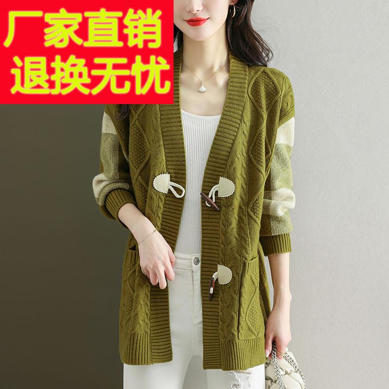 胖mm春秋特大码外搭羊毛针织开衫女宽松200斤中长款高端毛衣外套