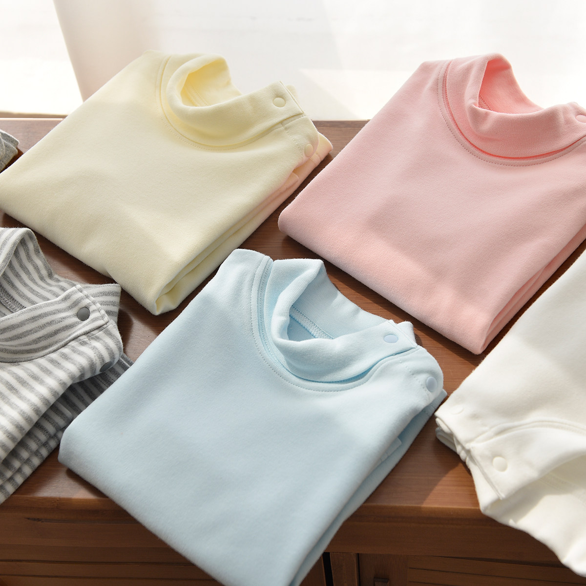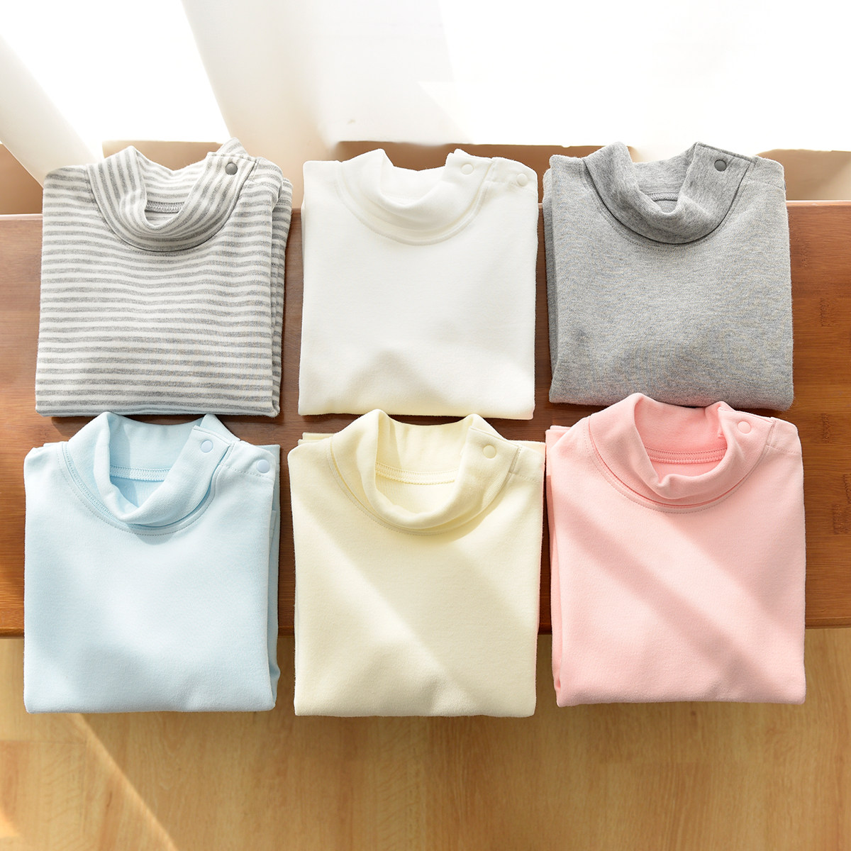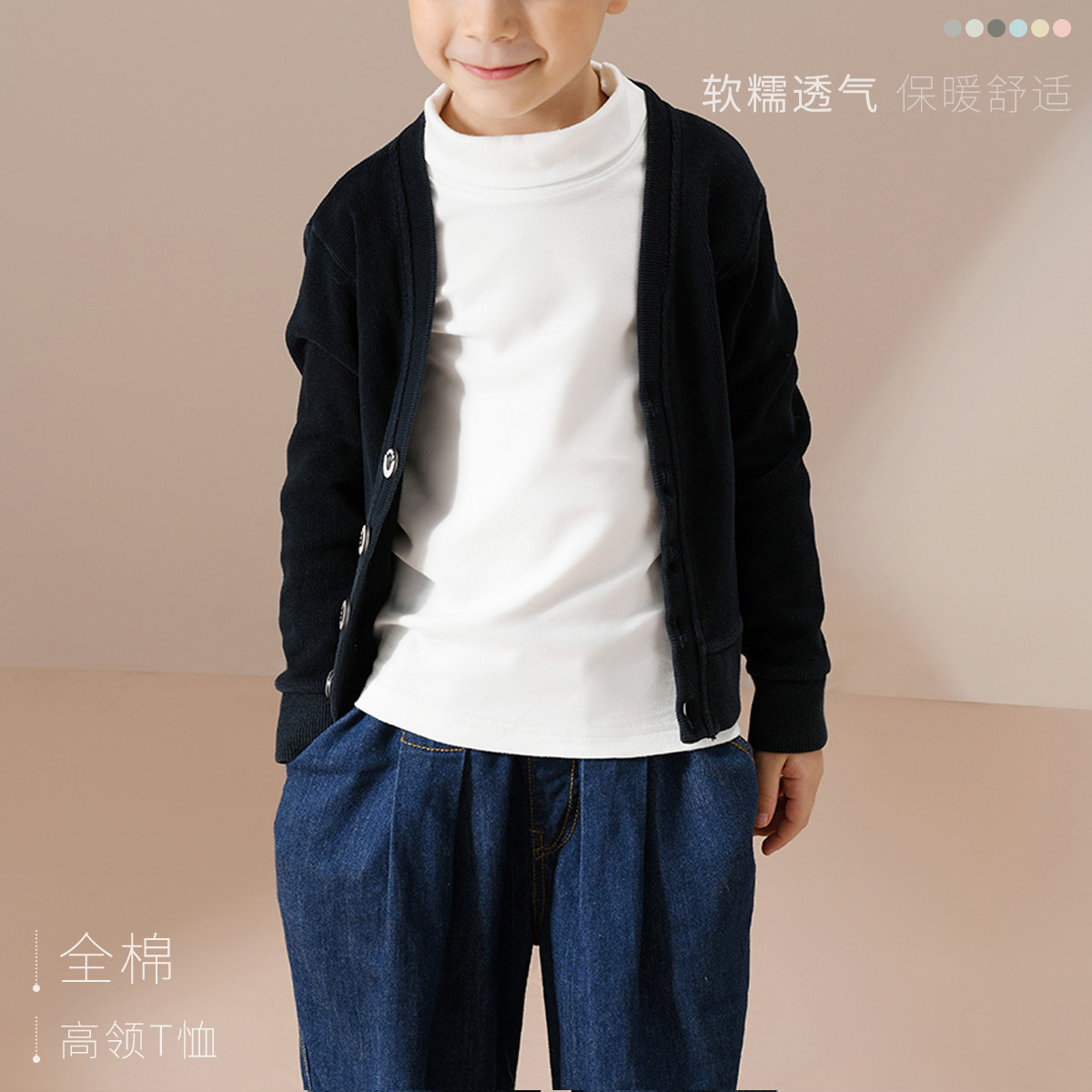 儿童纯棉高领T恤 男童女童磨毛长袖打底衫 中大童上衣 春秋款童装