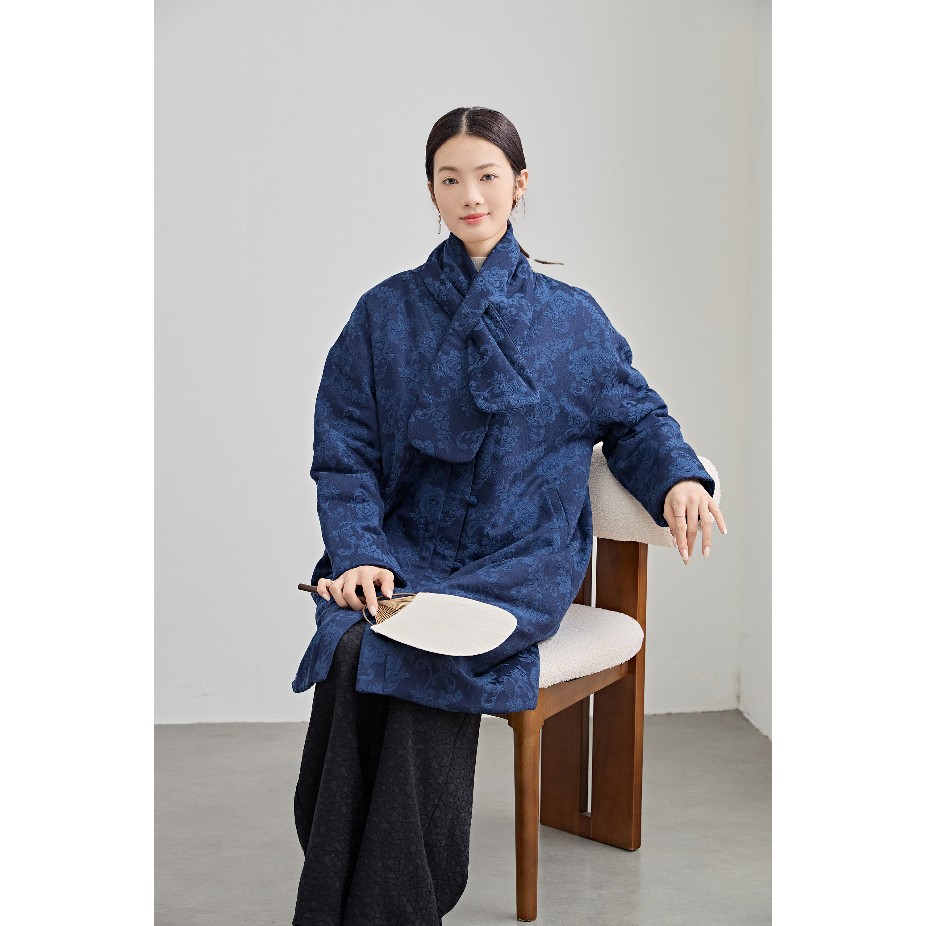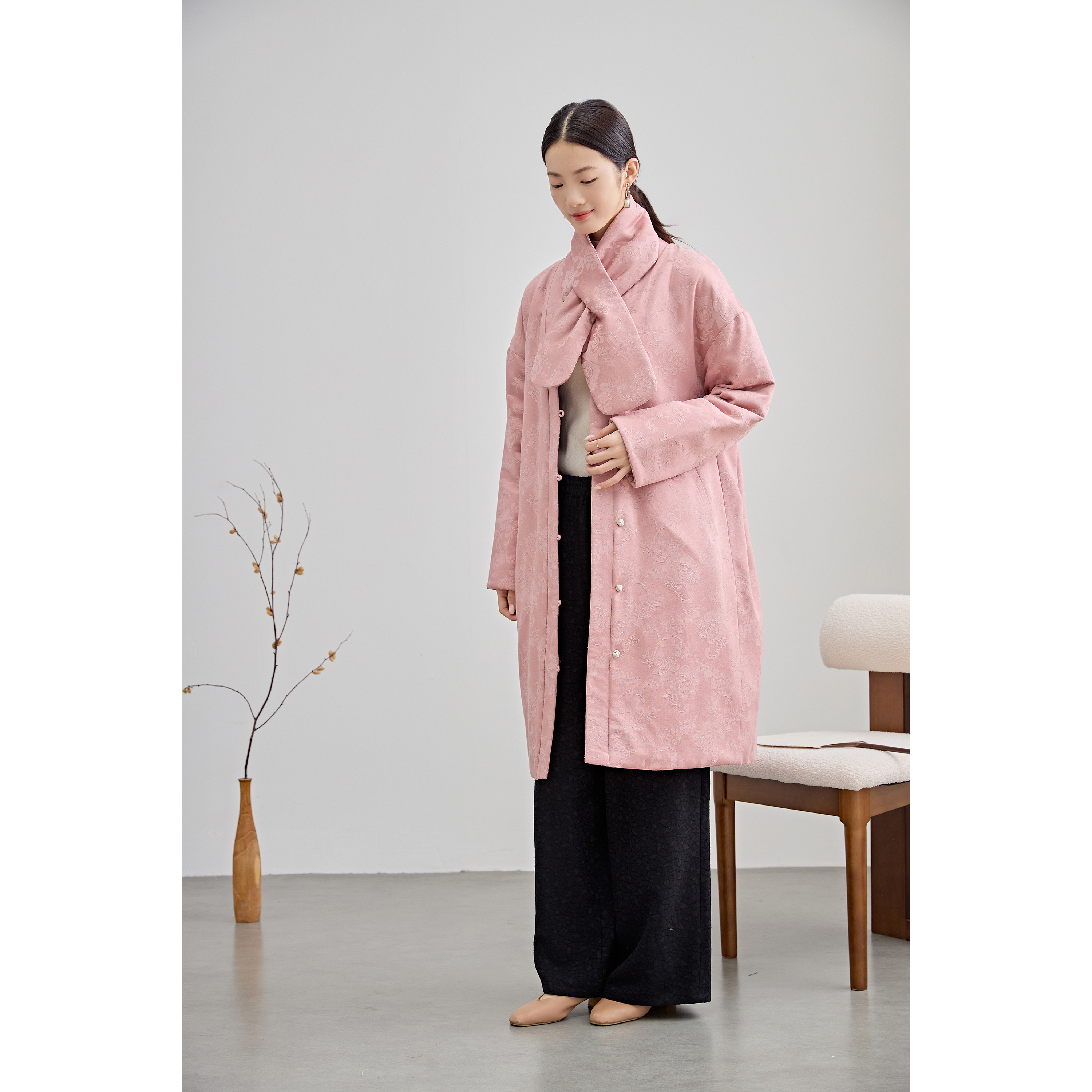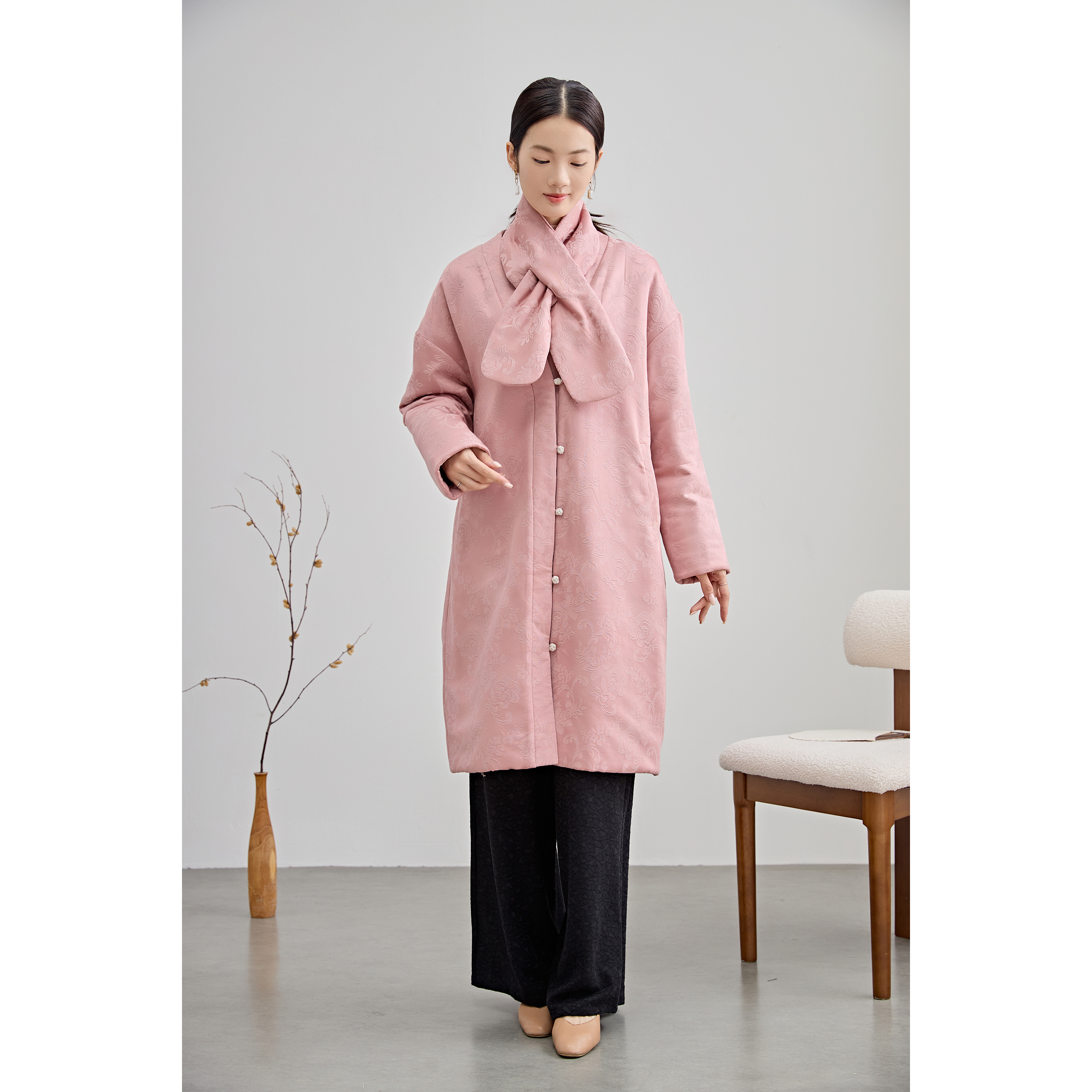 国风新中式棉服女士棉麻提花