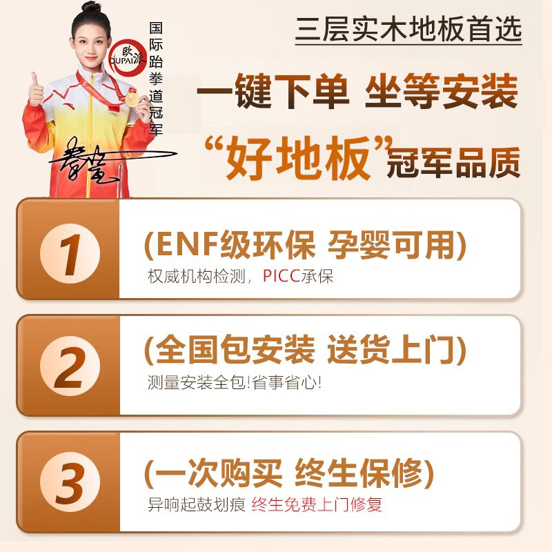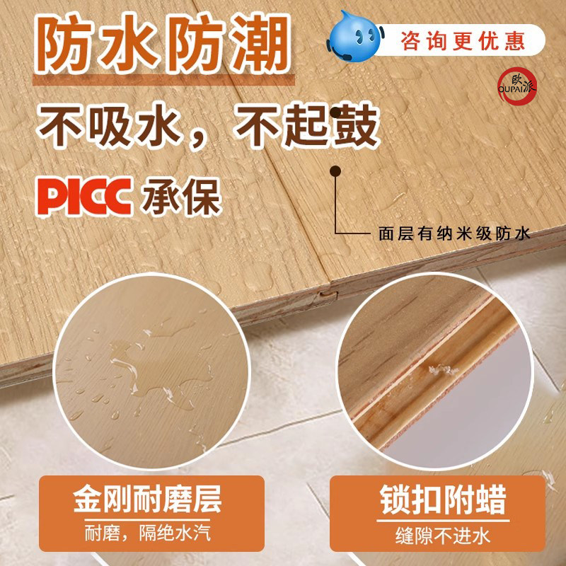 欧派新三层实木地板防水耐磨环保纯实木复合家用地暖木地板自己铺