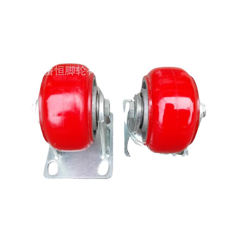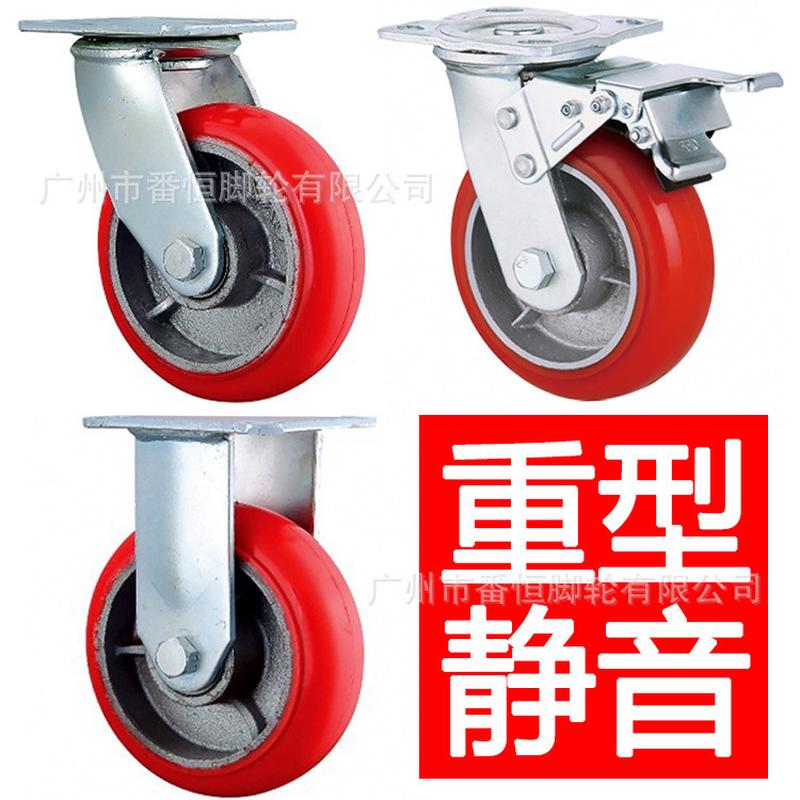 4寸铁芯PU刹车万向轮5寸重型聚氨酯脚轮厂家边刹橡胶定向轮不锈钢
