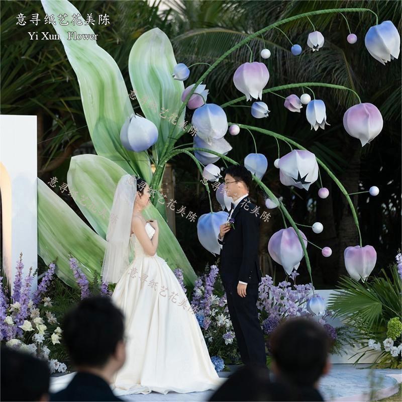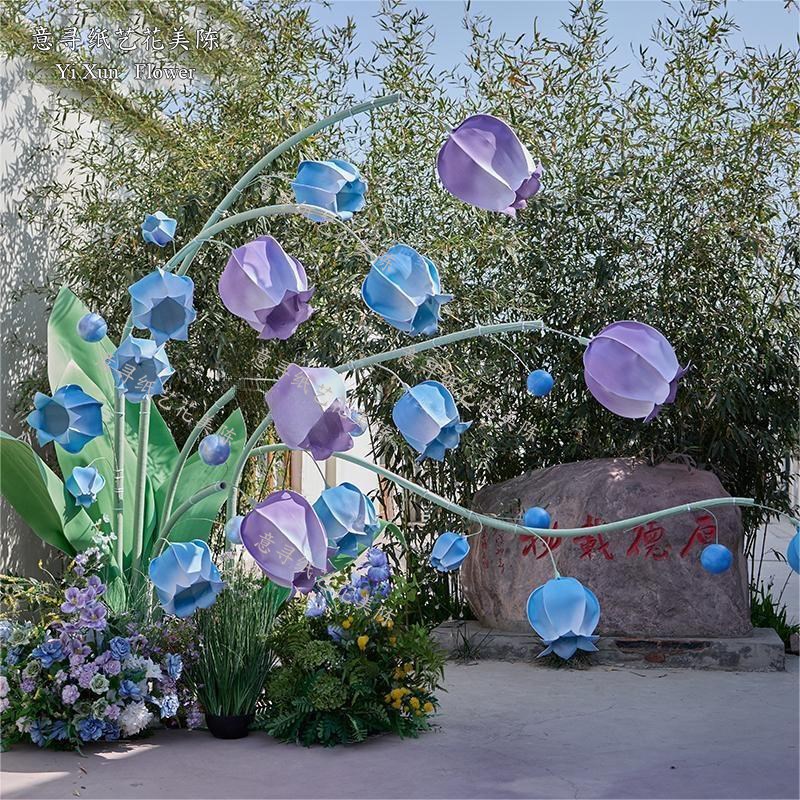 婚庆铃兰风铃纸艺花草坪婚礼布置装饰道具舞台背景紫色eva泡沫纸
