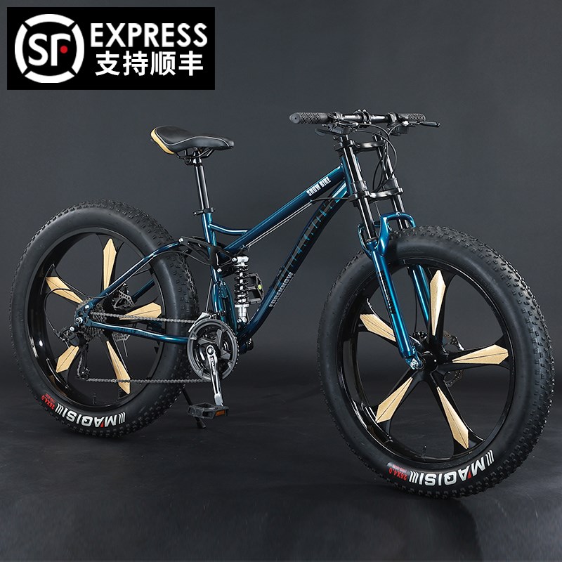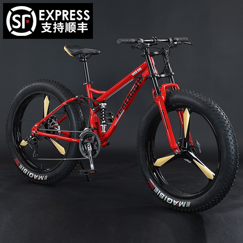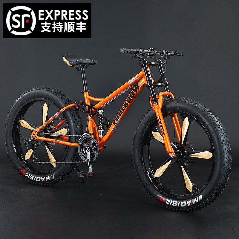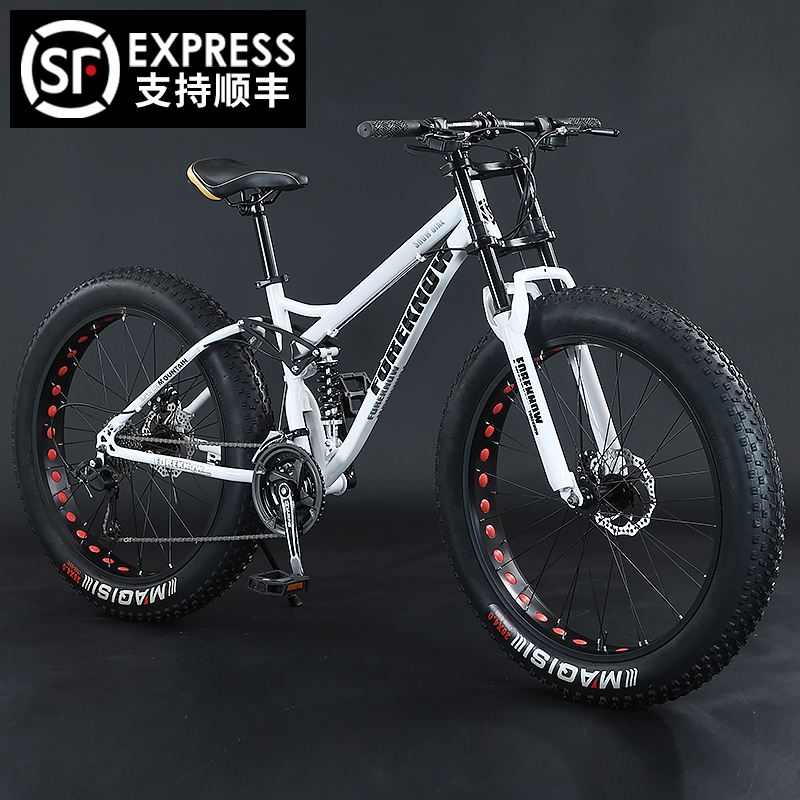 山地自行车变速越野沙滩雪地男女式青少年软尾减震4.0超宽胎单车