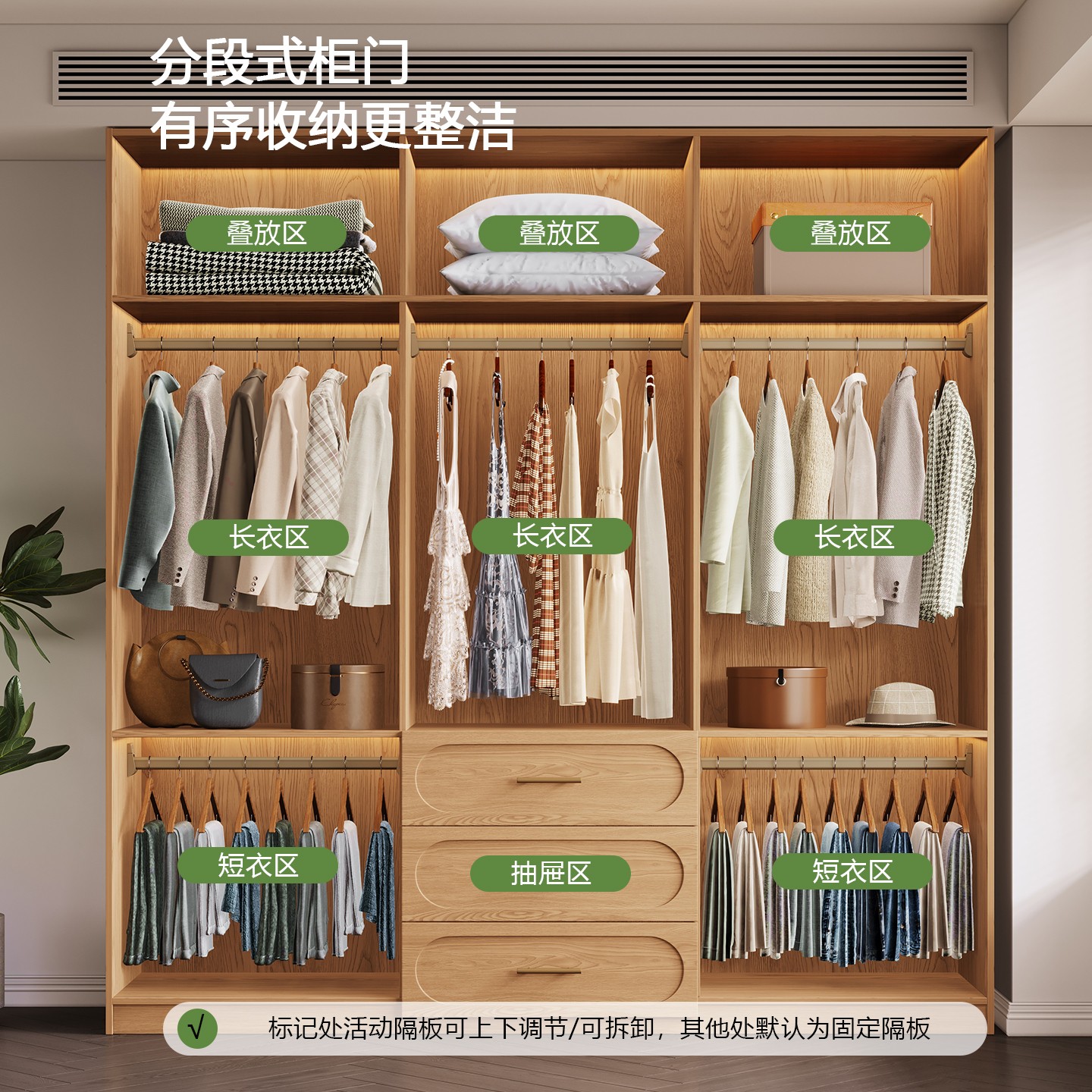 2025新款四五六门全实木橡木家用卧室大衣柜广东佛山原木衣橱定制