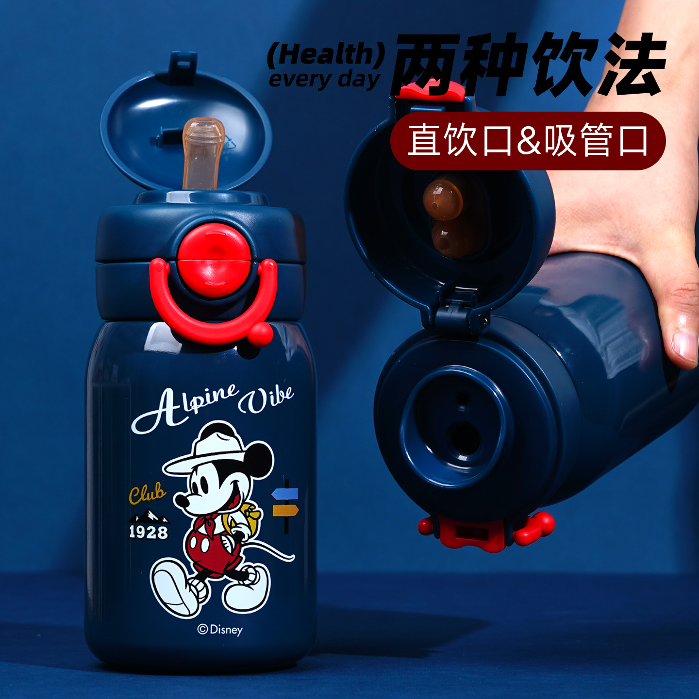 迪士尼儿童保温杯男孩上学专用幼儿园宝宝带吸管饮水杯小学生水壶