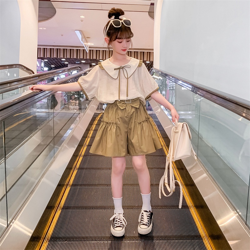 女童韩版套装2025夏季新款儿童洋气娃娃领短袖中大童休闲两件套