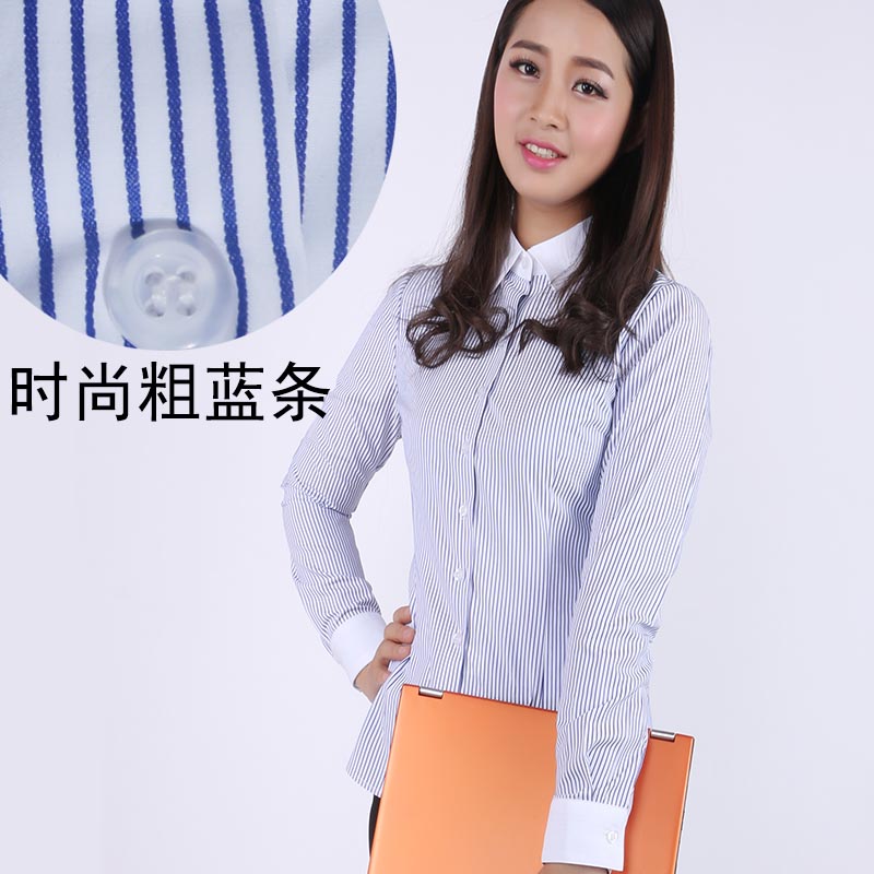 女士职业衬衫 白底蓝竖条纹上班面试抗皱免烫工装制服商务装工作