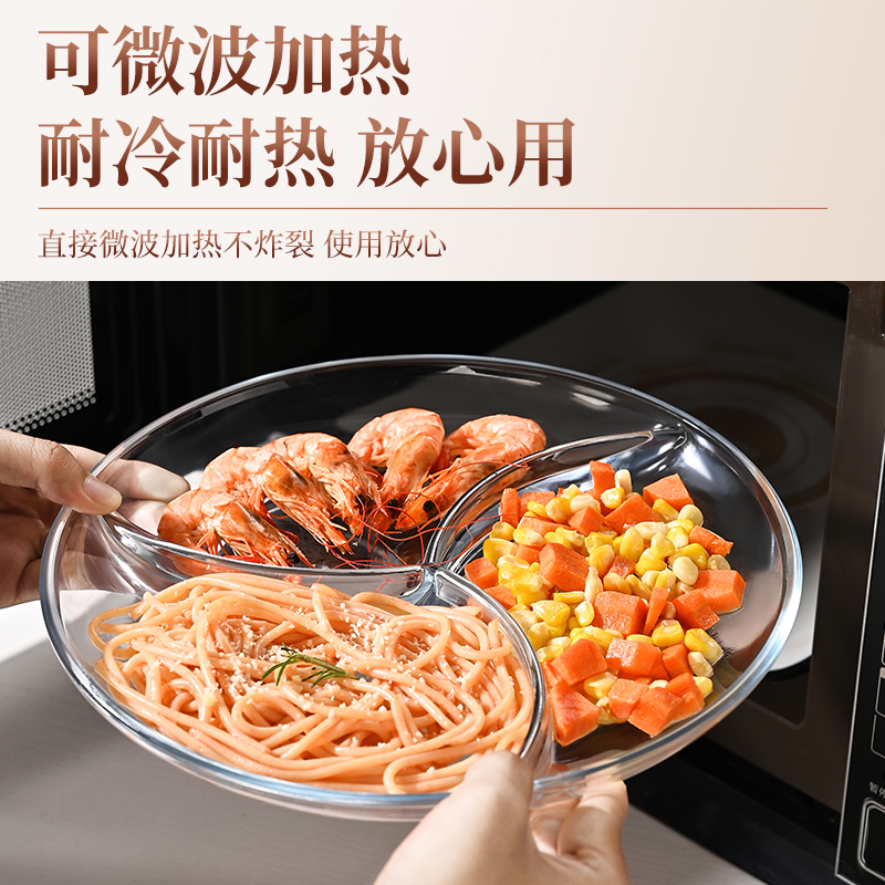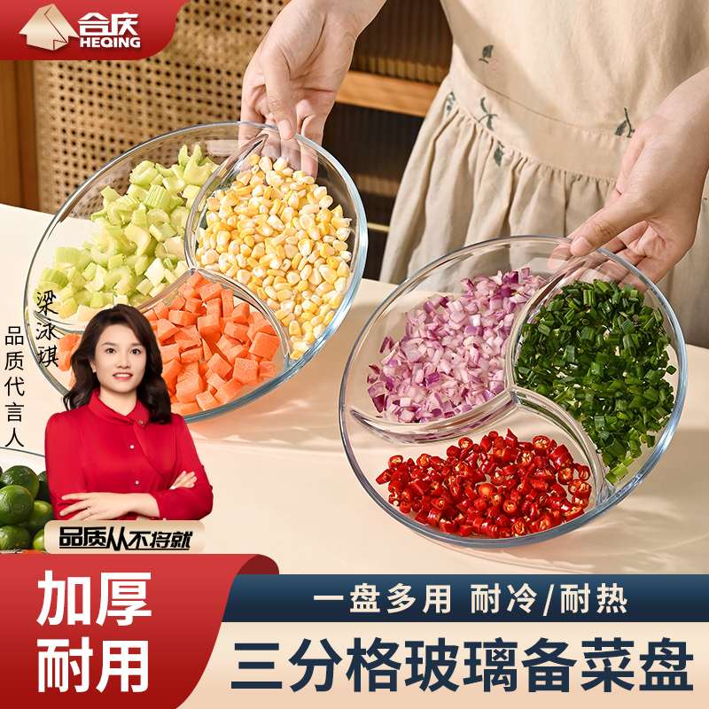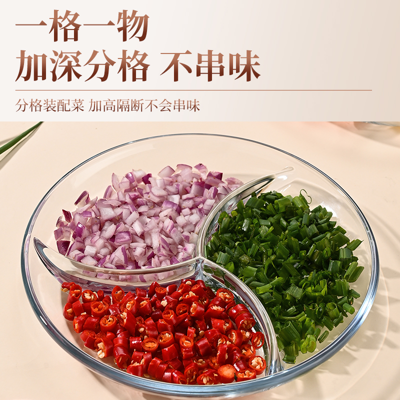 分格备菜盘玻璃葱姜蒜火锅配菜盘配料餐盘家用佐料小料分格盘子