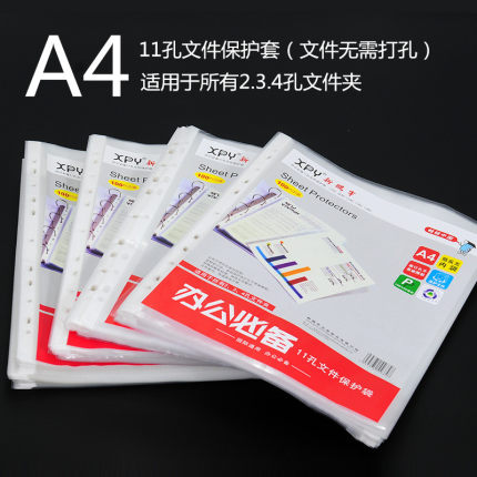 新鹏宇A4 PP活页文件袋11孔文件保护套活页袋保护膜内页袋透明塑料插页袋2 3 4孔打孔文件夹配套用多孔文件袋