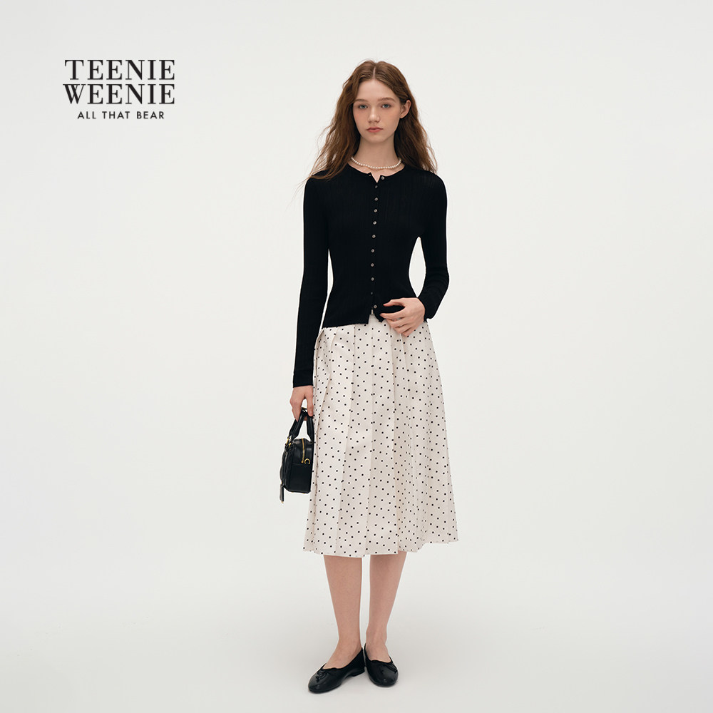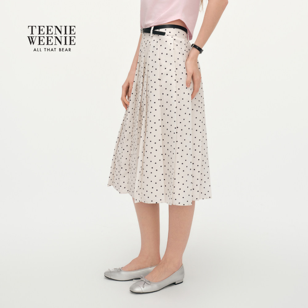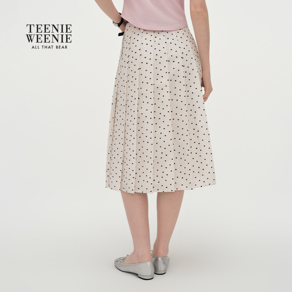 TeenieWeenie小熊女装半身裙26春季新品休闲宽松波点A字裙百褶裙
