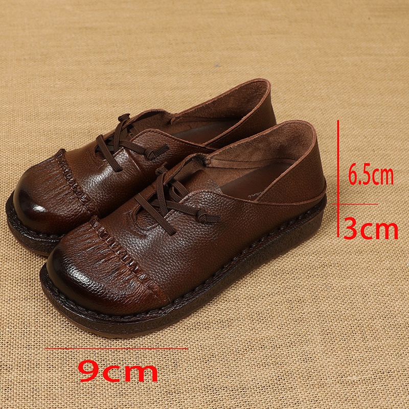 超软里外全牛皮牛筋底复古单鞋春季手工妈妈皮鞋女真皮百搭平底鞋