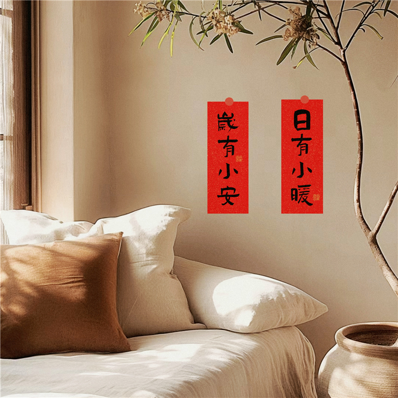 新年喜庆小对联窗贴春节乔迁氛围场景布置小众高级感书法文字门贴