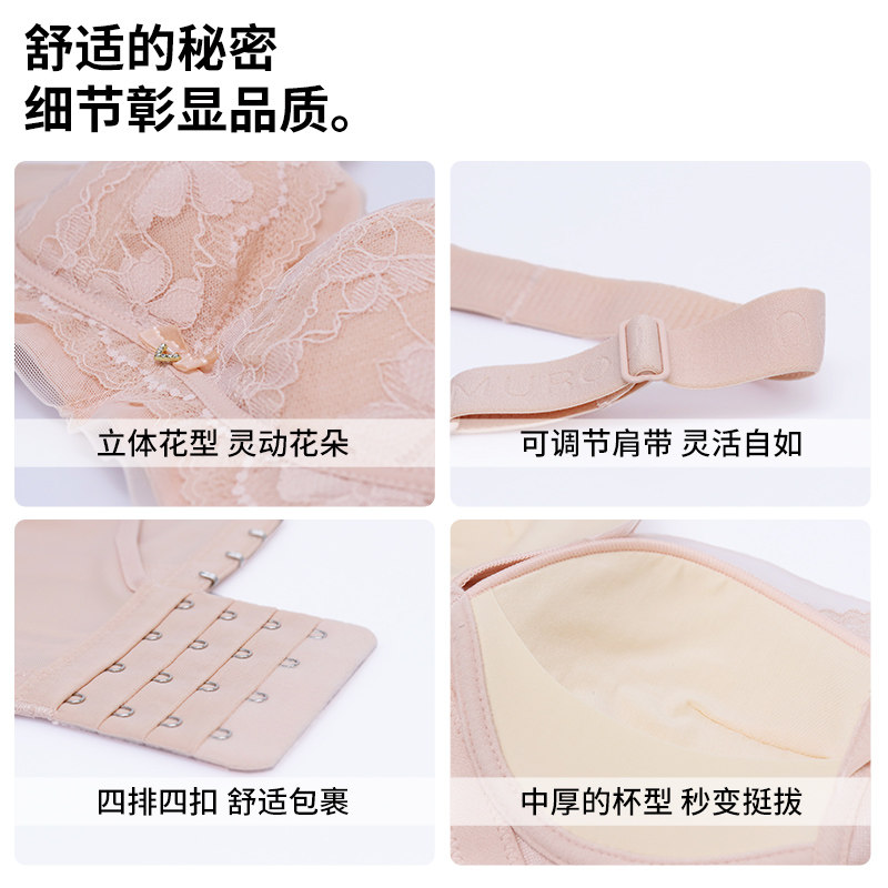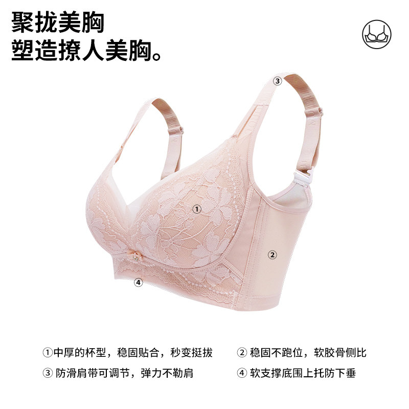 牧柔中厚B杯内衣小胸显大聚拢无钢圈蚕丝透气文胸防下垂蕾丝胸罩