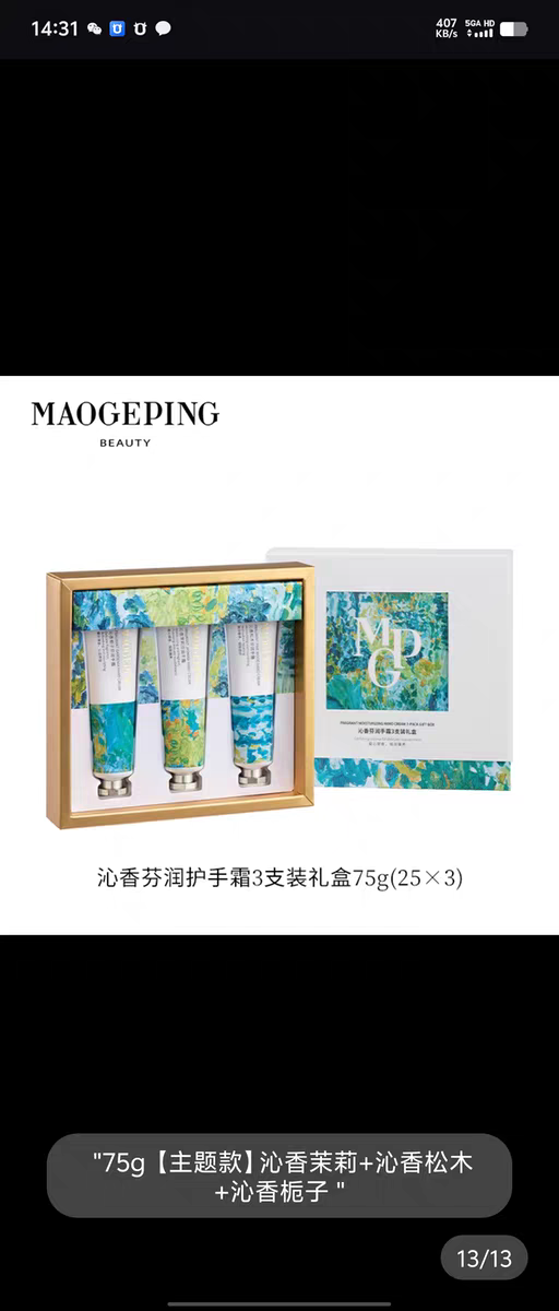 毛戈平沁香松木栀子茉莉花护手霜联名款礼盒三支装润手霜25g 60g